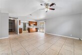 Spacious single-story gem ready for you to call home! This inviting property features low-maintenance desert landscaping in the front yard, three bedrooms, and two full bathrooms, with ceiling fans throughout for added comfort. Enjoy fresh, crisp paint and plush carpeting that create a clean and welcoming interior. The kitchen offers a breakfast bar, tile flooring, and ample counter and cabinet space—perfect for everyday living and entertaining. The garage has been thoughtfully converted into a functional work area, adding flexibility to the space. Step outside to a private backyard complete with a covered patio, ideal for relaxing or hosting gatherings.