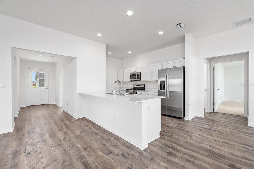 RENT FIRST BEFORE YOU BUY...This Beautiful NEW Pebble Beach model with two car garage is UNFURNISHED. 3 bed 2 bath home w/split floor plan is located on a dead end corner lot with NO back neighbors! Enjoy your coffee with the sunrise on your screened back lanai and watch the sunset on your front porch. Features include: white quartz countertops,window treatments,abundance of natural light,East-West exposure in the Village of Oak Hollow. Available for 12 month lease at only $2600 per month. First,Last,& Security Due at signing of lease. Eastport Town Center and mile-long Central Lake with sunset island is so close you could walk! Sawgrass Grove with nightly entertainment is an easy golf cart ride and an easy drive to Brownwood Paddock Square. Live the stress free lifestyle before you buy!! The owner pays amenities fee,Water,Trash,Sewer,Pest control and Yard Services. Future Villager pays gas,Electric & Cable/Internet and $50 Lifestyle cards for two. Your new home is conveniently located near 3 recreation areas,and within 5 minutes of 5 executive golf courses,4 recreation centers,3 championship golf courses and walking distance to future Woodlands Country Club. Dogs allowed on a case by case basis. –You are Ready to ENJOY Life MLS# O6355582
