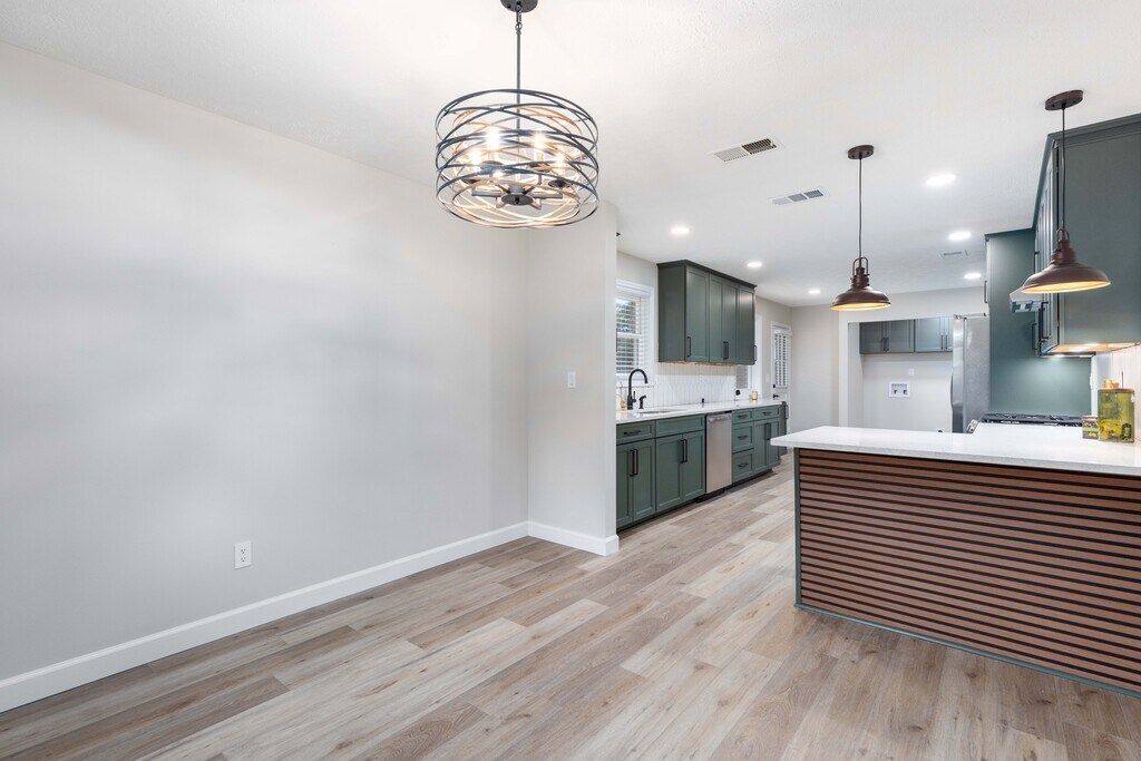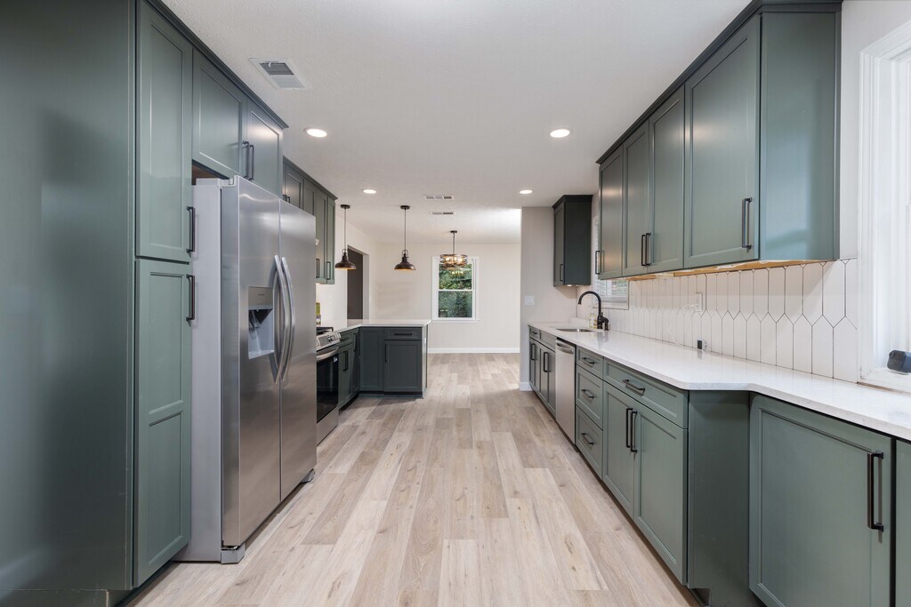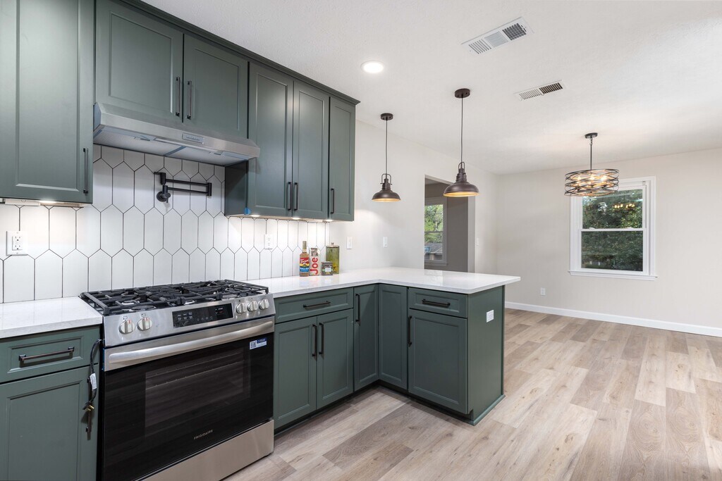 This beautifully reimagined home has been painstakingly rebuilt from the studs out with modern comfort and style in mind. Every detail has been thoughtfully selected from the brand-new kitchen with soft-close cabinetry, full-extension pull-out drawers, refrigerator with water & ice, and all-new gas stainless steel appliances, to the cost-efficient updated systems including a new water heater, added insulation in the attic, and other money-saving fixtures. Light fills the home through new energy-efficient double-hung windows, highlighting the new plank flooring throughout. Each room features a designer dimmable fandolier (fan + chandelier) with remote controls for comfort and ambiance. Situated on a 1/3-acre corner lot, this rental offers plenty of space inside and out, including a fully enclosed yard, oversized carport, shed, storage room, and expansive concrete patio perfect for outdoor entertaining or quiet relaxation. With every major system and finish updated, this home offers the rare opportunity to move right in and simply enjoy. This is not just a rental, it's a home designed for comfort, elegance, and everyday enjoyment. A true labor of love, now ready for its new tenant. At $1950/month, this home is priced above the area's older, smaller rentals but with every system and finish brand-new, it offers extraordinary value for the discriminating tenant who wants more than the ordinary.