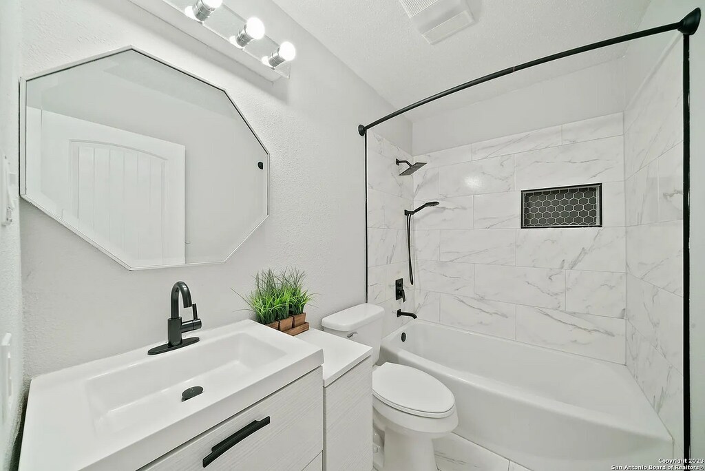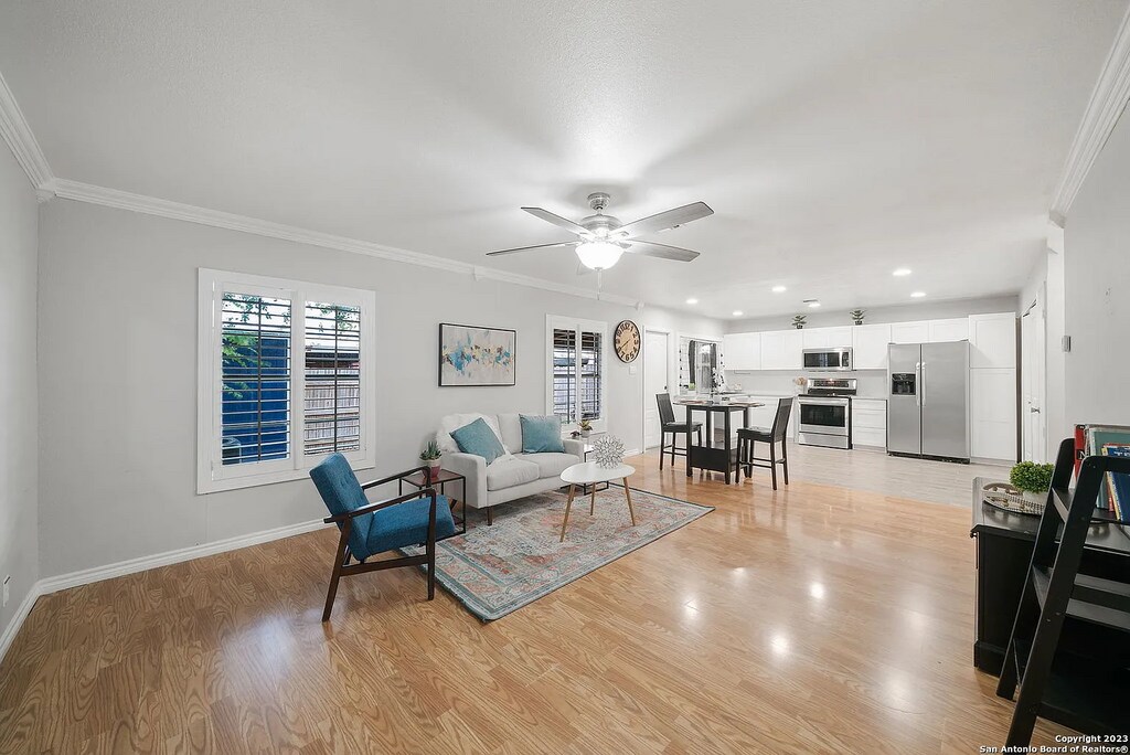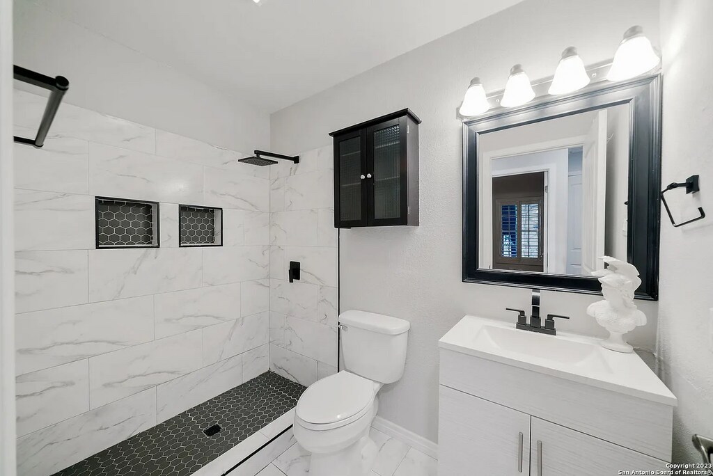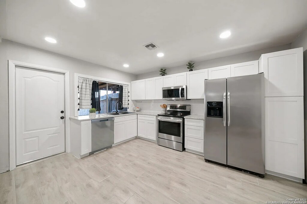 This is the cutest townhome in one of San Antonio's most convenient locations! The great-room style layout of the main living area and kitchen is perfect for entertaining and lends a spacious feel. Recent kitchen upgrades include soft-close shaker style white cabinets, new granite counters, new subway tile backsplash, and gorgeous modern flooring. Both bathrooms have been tastefully renovated as well. A covered patio overlooks the low maintenance yard and leads to a storage room and the enclosed 2-car carport. Plantation shutters throughout. No carpet! HVAC approx 2 years old. No HOA