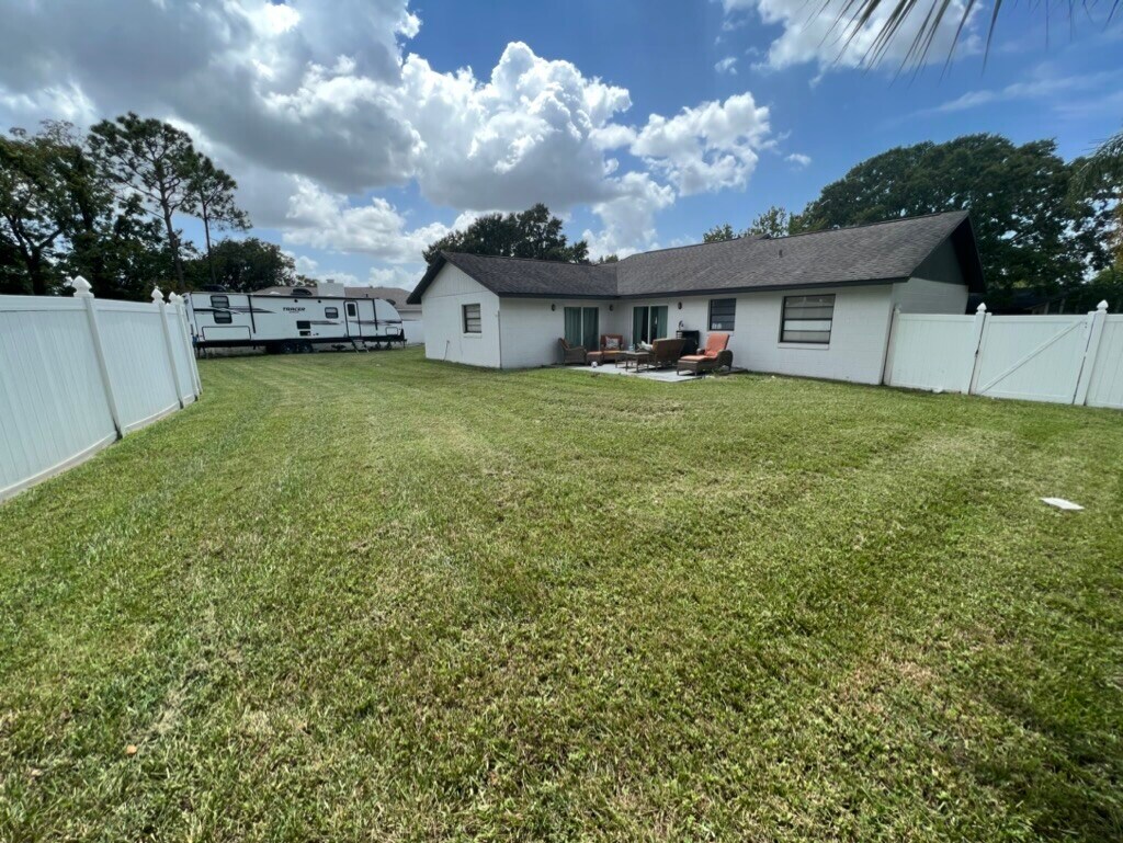 Great house. 1650 sqft with 2 car garage and additional parking in the back, bring your boat, rv or extra vehicles. Within Winter Garden golf cart zone so bring your cart and head down to Plant street. Recently remodeled throughout. Partially furnished including kitchen items (dishes/glasses/silverware). Some personal items pictured will be removed. 65” Samsung in living room and LG in master bedroom included. If you have furnishings included can be removed as well. Master with en-suite has walk in shower. Second bedrooms share hall bath. Fully fenced yard gives plenty of privacy and room to let your dog play. Dogs are the only pets permitted. Washer dryer hookups in the garage and extra fridge out there as well. Travel trailer in pictures to be removed prior to rental. Income requirement background and credit check required. Renter responsible for all utilities and yard maintenance. 12 Mo lease unless otherwise discussed.
