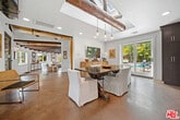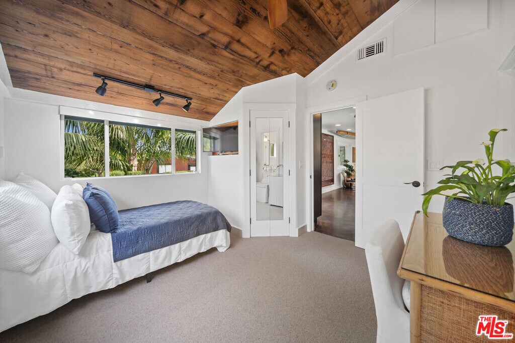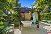 Set behind gates on one of Point Dume's most desirable streets, this private coastal refuge blends relaxed California living with a refined, resort-style atmosphere. Surrounded by lush landscaping and tall palms, the single-story main residence opens to expansive sun-filled spaces, warm wood accents, and seamless indoor-outdoor flow. The heart of the home is an impressive chef's kitchen appointed with richly toned cabinetry, striking natural-stone counters, professional-grade Viking appliances, and an oversized center island designed for cooking, gathering, and entertaining. The adjoining dining and living areas feature dramatic exposed beams, skylights, and large glass doors that frame views of the tropical backyard. The serene bedroom suites offer peaceful garden outlooks, vaulted wood ceilings, generous closet space, and beautifully remodeled bathrooms finished with stone surfaces, spacious showers, and a freestanding soaking tub. An additional flexible room functions well as an office or cozy lounge. A powder room with direct access to the yard adds convenience for poolside living. Outside, the property becomes a private retreat with a large pool, expansive patio areas for dining and lounging, vibrant greenery, and an outdoor bathing pavilion with a sculptural clawfoot tub. Mature hedges provide exceptional privacy throughout. A detached structure accommodates use as a gym along with abundant storage, while the main driveway provides generous parking. Located moments from Point Dume's shops, schools, and world-renowned beaches, this offering presents an exceptional opportunity to lease a beautifully maintained home in one of Malibu's most coveted neighborhoods. Beach key to Riviera II is included, providing access to one of Malibu's most treasured sandy stretches. *Guest house not included in lease* MLS# 25627979