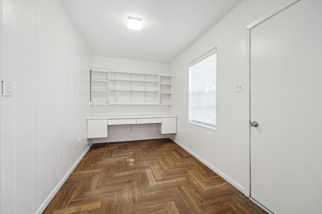 Charming ranch style home in the heart of Timbergrove; lovingly maintained w/designer updates; freshly painted interior w/gorgeous Herringbone hardwoods throughout; two living spaces with new can lighting; galley style kitchen with hand poured concrete counter tops,stainless appliances; convenient breakfast area with sliding pantry doors; huge primary closet plus a second closet; private study w/built-ins; washer & dryer included; craft /sewing room off garage; huge back yard w/storage shed and covered patio for relaxing and entertaining; fantastic large lot with mature trees. MLS# 56188756