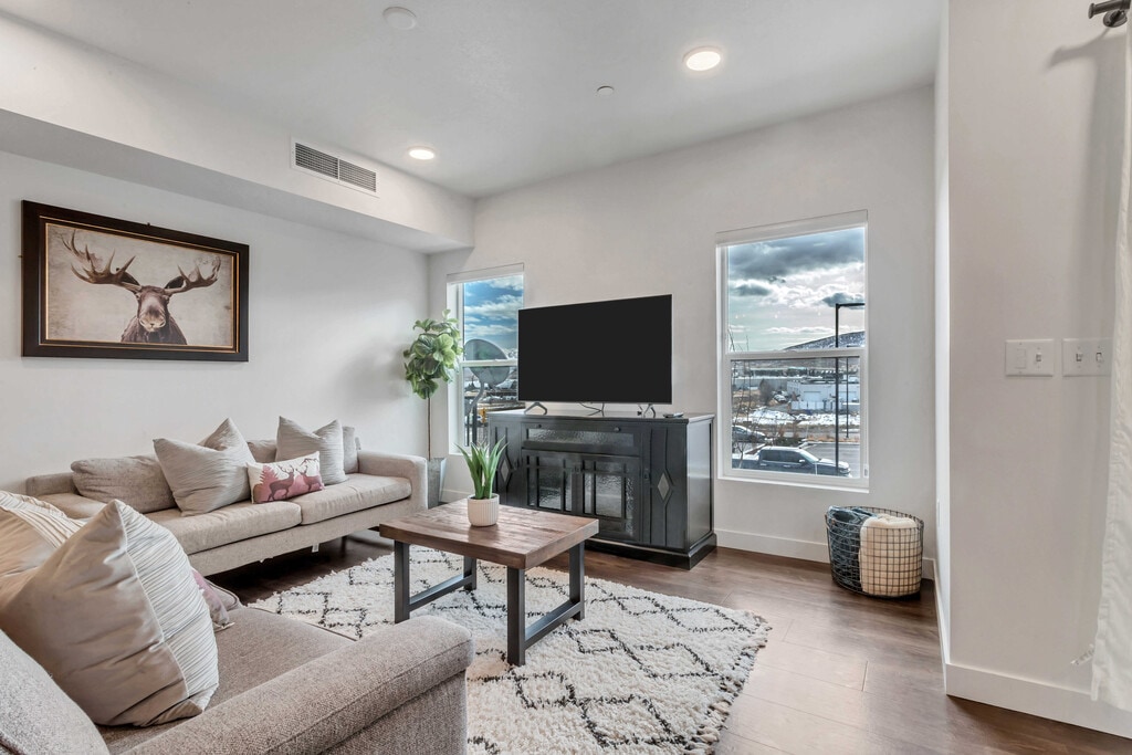 2022 Brand New condo located at Silver Creek Village community in Park City. This home has 2 bedrooms and 1 bathroom. 10 minutes to Park City and Deer Valley. Close access to I-80 with easy travel to Salt Lake. *Available April 6th* *This is a furnished unit* We prefer NO pet. If you have a well-trained pet friend, We can negotiate it. A pet fee will be applied. -Park, hiking, and biking trails nearby -walk-in closet in the master bedroom -Plenty of storage -laundry in the unit