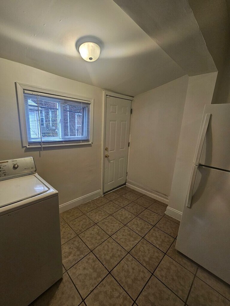 Rehabbed row with a tiled enclosed porch, open main level floor plan with an eat-in kitchen and main level laundry with exit to rear of property. The 2nd floor offers freshly painted bedrooms and a modern bath. The home features laminate and tile flooring throughout for easy maintenance and individually controlled baseboard heat for maximum comfort and economy. Desirable location near shopping and public transportation. First, last and security required to move in.