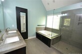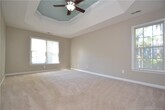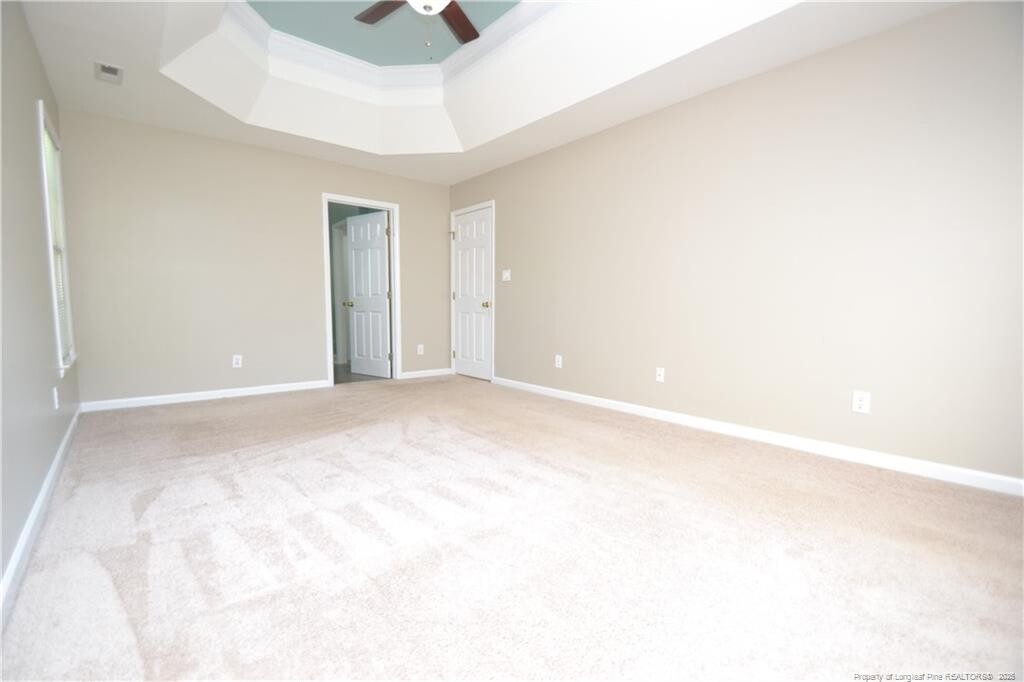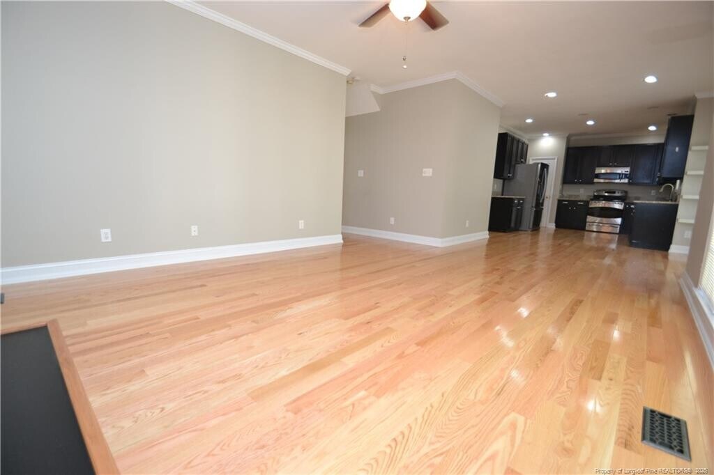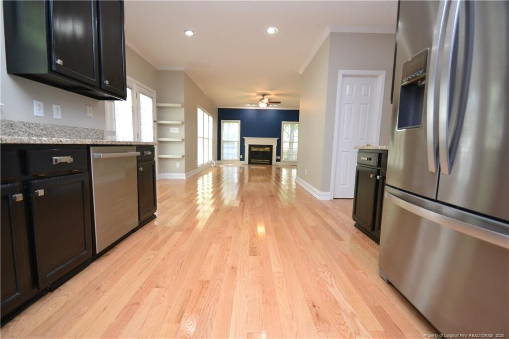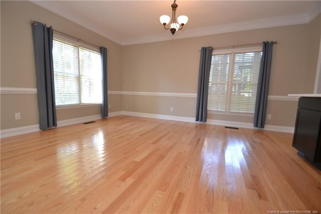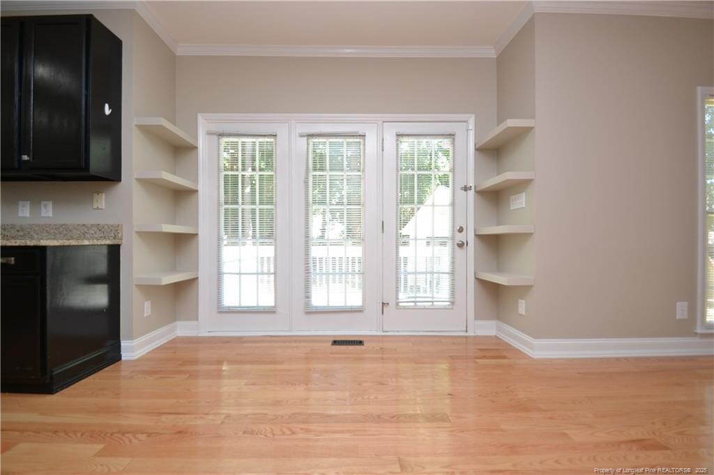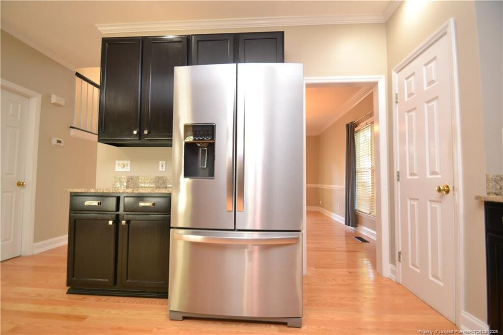 This fantastic home is available for immediate occupancy and sure to please! 6524 Englehardt Drive is tucked-away in Dominion Park; a coveted north Raleigh neighborhood convenient to RTP, I-540, local, highly-rated schools, parks and more. A wide driveway, alluring curb appeal and a beautiful palm tree greet you on arrival. Once inside, you'll find yourself in a dramatic, 2 story foyer with copious amounts of natural light, gorgeous hardwood flooring and an exposed staircase. The foyer opens on the left to a large dining room with 4 picture windows, heavy crown molding and a built-in side table that works perfectly for entertaining. Take the foyer straight ahead and you'll enter an expansive, open-concept living area that works perfectly for entertaining and casual, everyday living alike. The stunning kitchen has been totally updated with espresso cabinetry, beautiful granite countertops with an integrated backsplash, crown molding, a stainless-steel double-bowl undermount sink with a window above it, a pantry and a suite of sleek stainless-steel appliances, including a smooth-top oven, a built-in microwave and a French door refrigerator with ice and water in the door. The kitchen adjoins a perfectly-proportioned breakfast area with built-in shelving and multiple full length windows (as well as a door) overlooking the backyard and deck. The breakfast area seamlessly intertwines with a gorgeous family room offering hardwood floors, triple picture windows, recessed accent lighting, a ceiling fan and a cozy fireplace with a white mantle and contrasting accent wall. Next, take a quick jaunt to the top floor where you'll find all three bedrooms as well as a bonus room and a conveniently-located laundry room with washer/dryer included for resident's use. The primary bedroom is a sight to behold with a tray ceiling, triple windows, a walk-in closet. Its renovated bathroom features plank flooring, a jetted tub, a picture window, a water closet, a tiled, walk-in shower with a frameless glass surround and dual showerheads and an elevated vanity with dual sinks and a custom concrete countertop. Bedrooms #2 and #3 are both generously proportioned with lovely natural light, walk-in closets and easy access to a renovated hall bathroom with dual sinks on a granite-topped vanity (no more arguing about who brushes their teeth first), custom storage cabinetry with frosted glass features and a separate tub/shower/water closet room. The top floor continues to impress with a bonus room offering that additional space we always seem to be in need of. It also includes custom cabinetry, a built-in desk and a place for a TV. Before concluding your tour at Englehardt Drive, be sure to visit the amazing fenced-in backyard. It offers a sprawling deck, shade trees, a playset, a large open space and even a wired storage shed with an AC unit!