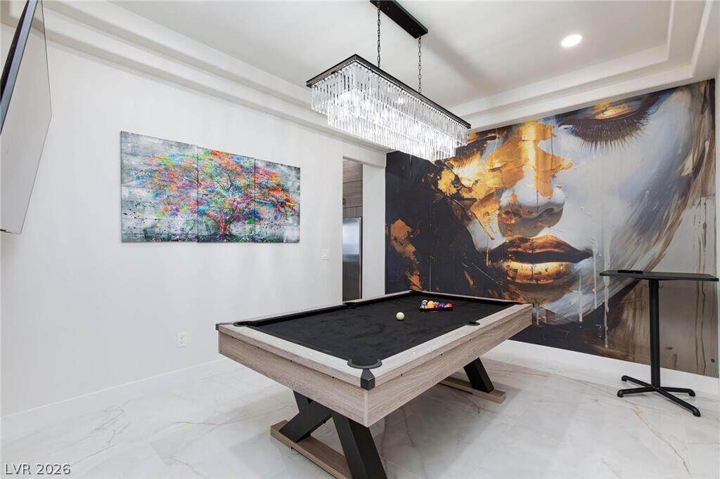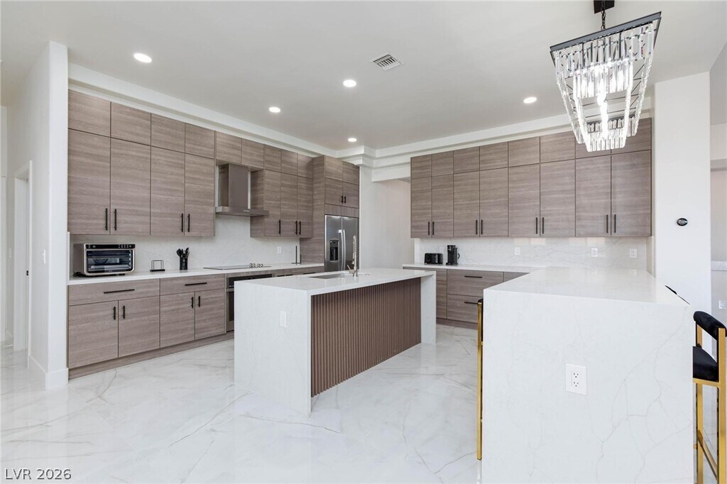 This ultra modern 1 story rental home is a stunning oasis situated on a sprawling 1 acre lot. The property features a luxurious pool, perfect for enjoying the warm summer days. Step inside to find 4 spacious bedrooms and 4 full bathrooms, providing ample space for comfortable living. The highlight of the home is the huge family room, complete with a sleek bar, making it the ideal space for entertaining guests or relaxing with family. The contemporary design of the home is evident throughout, with high-end finishes and modern fixtures. The open concept layout allows for seamless flow between the living spaces, creating a bright and airy atmosphere. Enjoy an incredible kitchen with plenty of cabinet space, a breakfast bar, waterfall kitchen island and high end appliances. Outside, the expansive yard offers plenty of room for outdoor activities and enjoying the beautiful surroundings. This property is truly a one-of-a-kind retreat, offering the perfect blend of luxury and comfort.