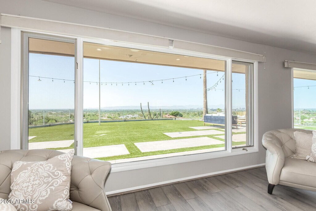Views for miles! Look east and you will see Camelback Mountain,to the south,you can watch airplanes take off and land from Sky Harbor,and look to the west for spectacular city light views of downtown. Panoramic views like you have never seen before. Fully furnished,4 bedrooms and 5.5 baths including a full pool bath. Relax in the pool overlooking the entire city. Hang out on the patio where you can watch both the sunrise and sunset. It is very rare you get a hillside home with such a flat pad,easy driveway and a full sport court with lights so you can play anytime. Private primary on it's own level has some of the best views in the home including from the primary shower. The 3 secondary bedrooms are great size with two being en-suite. 4 car garage. Must see!