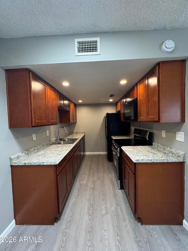 Generously sized 2 bedroom 2 bathroom unit located in Glendale with wood plank flooring and custom grey paint throughout. As you walk-in the front door,you will be greeted by a bright open concept living room and eat-in kitchen area. The kitchen has updated shaker style cabinets,double sink and full stainless steel appliance package. The primary bedroom also has an updated vanity in the private bathroom and walk-in closet. Other amenities include a dedicated laundry room with washer/dryer,carport and an enclosed patio with private yard area. This cozy community has a pool for the hot Arizona summer,a dog station and close to historic area of Glendale,shopping and restaurants. Pet-friendly for up to two spayed/neutered pets with a $350 fee per pet.