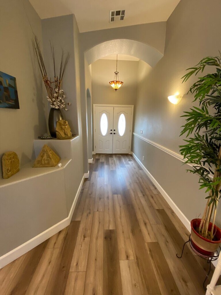 Entertainers great backyard with covered patio, sparkling Pool and Spa in Gated community in Aliante. Single story home in a cul-de-sac. Newly renovated 5 bedrooms, 3 full baths and 3 cars garage. Open floor plan, goumet kitchen with breakfast bar, stainless steel appliances, custom cabinets, walk in pantry and more. Great room with vaulted ceilings, modern fireplace and french doors to the backyard. Principal bedroom with direct access to the pool, large walking closet, double sink, separate tub and shower in an immaculate bathroom. All bedrooms have ceiling fans. Laundry room with storage cabinets. Property has solar panels, smart thermostats and more. Perfectly located near parks, sports fields, shopping, restaurants and schools. Fast access to the highway. This property is 20 minutes away from Nellis AFB and 30 from Creech. Applications can be downloaded from Bring Apps to 4033 W Charleston Blvd. 89102 with paystubs and $75 app fee per adult in certified funds. All adults must apply and sign lease. Any questions or to schedule a showing, call Ferran at or email at