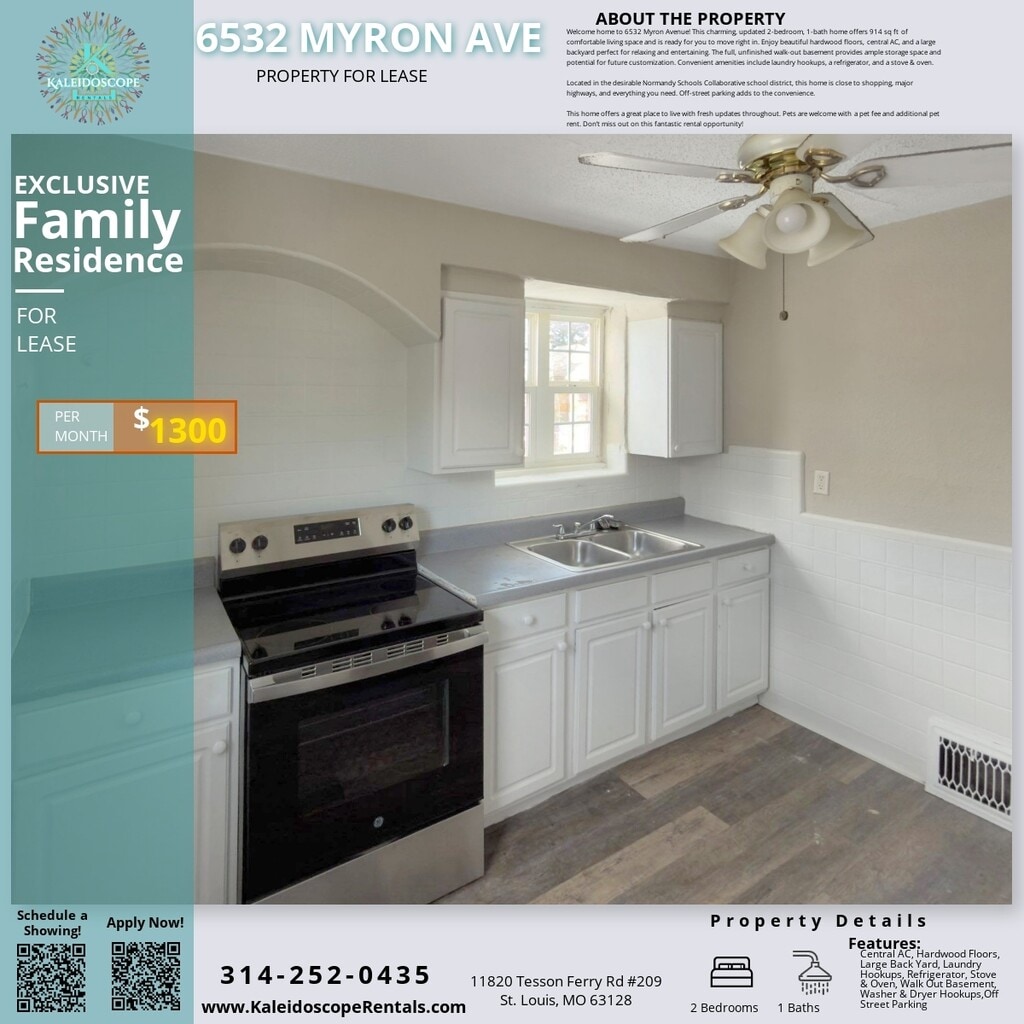 Welcome home to 6532 Myron Avenue! This charming, updated 2-bedroom, 1-bath home offers 914 sq ft of comfortable living space and is ready for you to move right in. Enjoy hardwood floors, central AC, and a large backyard perfect for relaxing and entertaining. The full, unfinished walk-out basement provides ample storage space and potential for future customization. Convenient amenities include laundry hookups, a refrigerator, and a stove & oven. Located in the desirable Normandy Schools Collaborative school district, this home is close to shopping, major highways, and everything you need. Off-street parking adds to the convenience. This home offers a great place to live with fresh updates throughout. Pets are welcome with a pet fee and additional pet rent. Don't miss out on this fantastic rental opportunity!