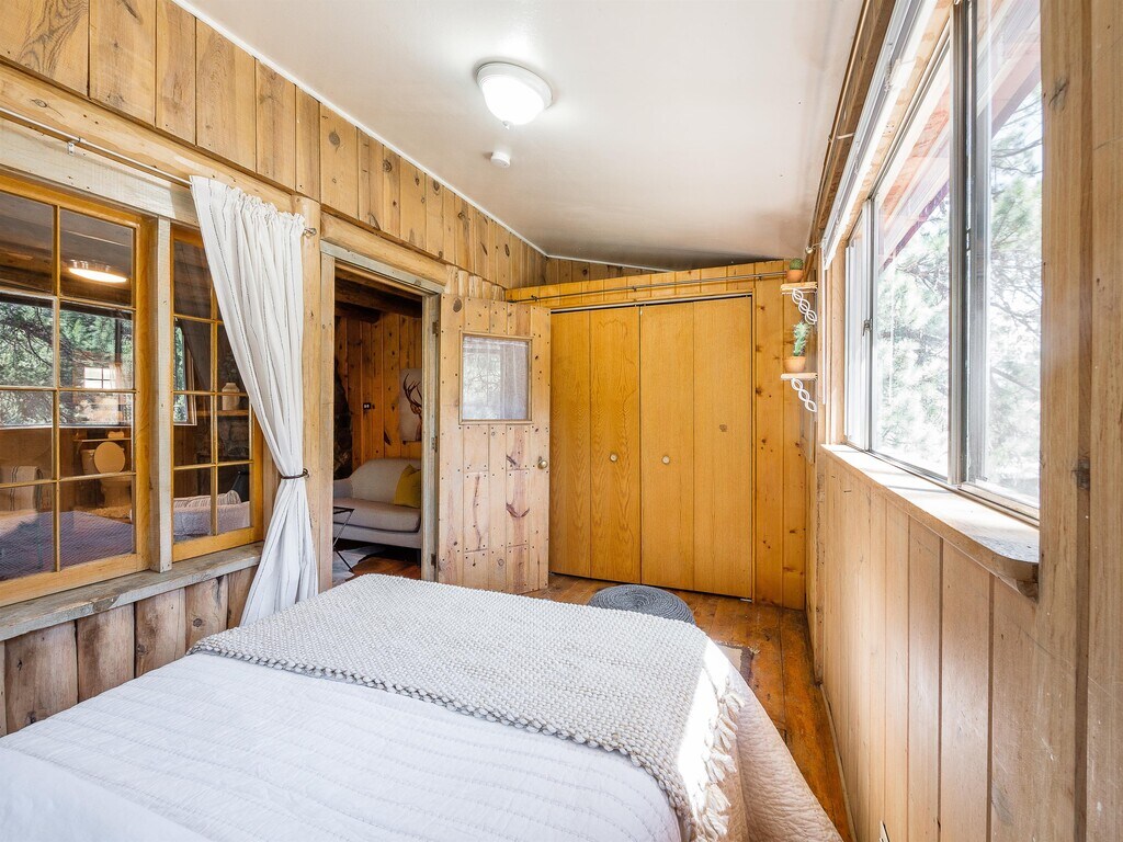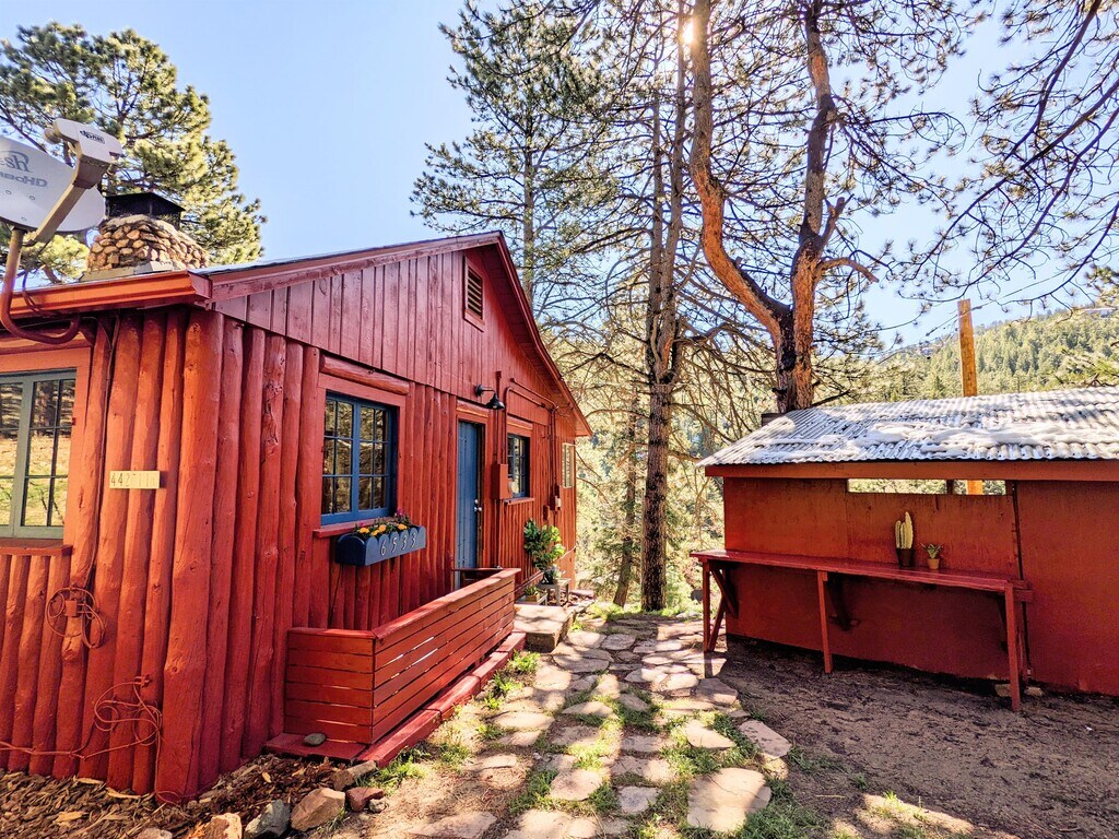 Welcome to your idyllic Evergreen cabin! This quintessential 1960s log cabin is one-half of a duplex, it is small (540 sq ft), but overflowing with character and charm. Situated on a private road 2 mi from the heart of Evergreen. Unlike a traditional duplex, the units face in opposite directions so you have a private entrance and private outdoor space. The location is ideal, offering convenience AND a private mountain feel. Less than 2 mi to the lake, downtown Evergreen, and dozens of hiking trails. Only ~30 minutes to Denver & Red Rocks. Easy access to the main roads for commuters, but far enough off the main stretch that it's peaceful. This is a mountain property, as such, self-sufficiency & responsible fireplace use are a must! We have very snowy winters so comfort navigating a snowy dirt road is needed. Bears, fox, mountain lions, elk, and deer call this land home so common sense regarding wildlife is also required. Important details: - One uncovered parking space steps from your front door, AWD needed, (could potentially fit two vehicles tandem, but not guaranteed) - Private covered pergola for ultimate outdoor living & ample outdoor space, just bring your hammock (no fence) - Only 2 closets in the cabin and limited storage space so creative storage solutions are a must. There is space outside to put a small outdoor storage shed, the tenant's responsibility. - Bathroom has a shower (no tub) - Charming vintage kitchen (no dishwasher) - Central heating, (no A/C) - Washer/dryer in unit - Cell phone service is great - Internet providers are HughesNet and Dish (call them for speed & pricing) - Snow removal for cabin and driveway is the tenant's responsibility - Snow plowing of the private road is split between all residents on the road (5 cabins) and is billed monthly. We do not have estimates as it depends on the amount of snow, the number of plows, and the rate that the plow company gives us. - Landscaping, weed clearing, and care of outdoor space are tenant responsibility - The cabin has some updates (as you can see in the photos), but it is still older with some older windows and an overall rustic feel. - Pet friendly - There is no fenced-in area for dogs