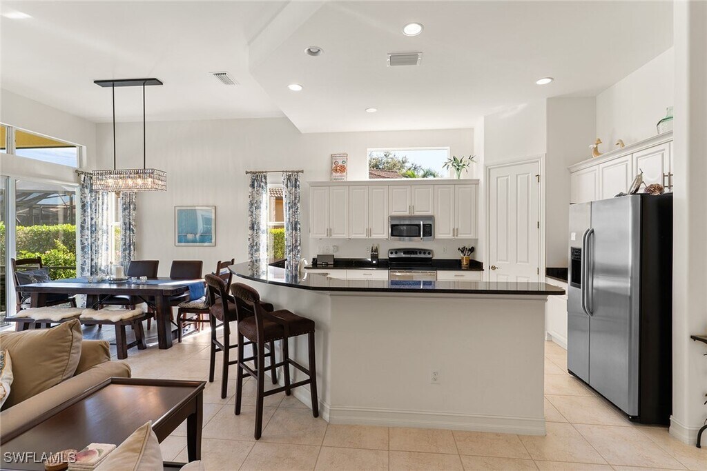 Lely Resort Caldecott Home with Player's Club and Spa Membership. Bright and Airy Pool home with new custom window dressings in main and plantation shutters. Lovely dining area Pottery Barn furnishings and dishes. Lots of other dishes for entertaining at the pool. Heated Pool has varied comfortable seating and lounging plus gas grill. 3 TV's and new stereo system complete with fun entertaining turn table/stereo/DVD too. Make yourself at home and luxuriate at the club and spa too. King in Master plus Queen and Twin bedrooms. One walk in closet in Master and many more closet spaces throughout home. You won't lack for anything. Bikes,beach chairs,cooler,umbrella!! Owner thought of everything. Enjoy your Naples stay not far from 5th Ave Dining and Shopping,beaches too. Close to Marco Island beaches as well. You will love this convenient gated community.