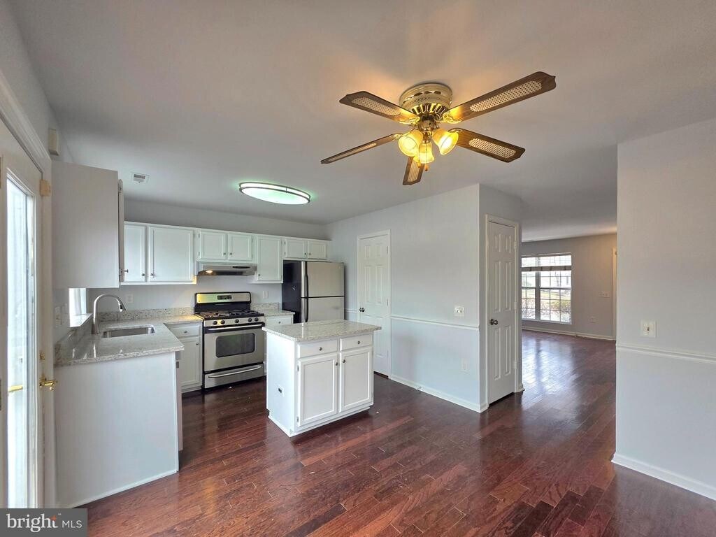 Discover 6539 Old Carriage Lane, a remarkable end-unit townhome nestled in the desirable Landsdowne community. The main level welcomes you with classic hardwood floors, freshly painted neutral walls, and soft new carpeting upstairs. Sunlight floods the living room through a large double window, highlighting the inviting fireplace adorned with a stylish tile surround and a detailed wooden mantel. The updated eat-in kitchen features sleek granite countertops, modern white cabinetry, stainless steel appliances, a center island, and a deep sink with a swan-neck faucet. Decorative chair rail adds an elegant touch. Step from the kitchen onto the spacious brick patio leading to a generous, fully fenced backyard—ideal for entertaining or relaxing. A handy storage shed provides room for tools and outdoor items. The main-level half bath boasts a contemporary vanity, and the washer and dryer are conveniently located nearby. Upstairs, two spacious owner’s suites await, each with vaulted ceilings and ample closet space. The shared Jack-and-Jill bathroom offers a long granite double-sink vanity with chic round mirrors and updated lighting, along with a white subway-tiled shower complete with a built-in niche for essentials. Landsdowne residents enjoy a wealth of amenities, including an outdoor pool, tennis and basketball courts, and scenic walking and jogging trails. The community is within walking distance to Wegmans at Hilltop Village Center and just a short drive to the Franconia-Springfield Metro Station.