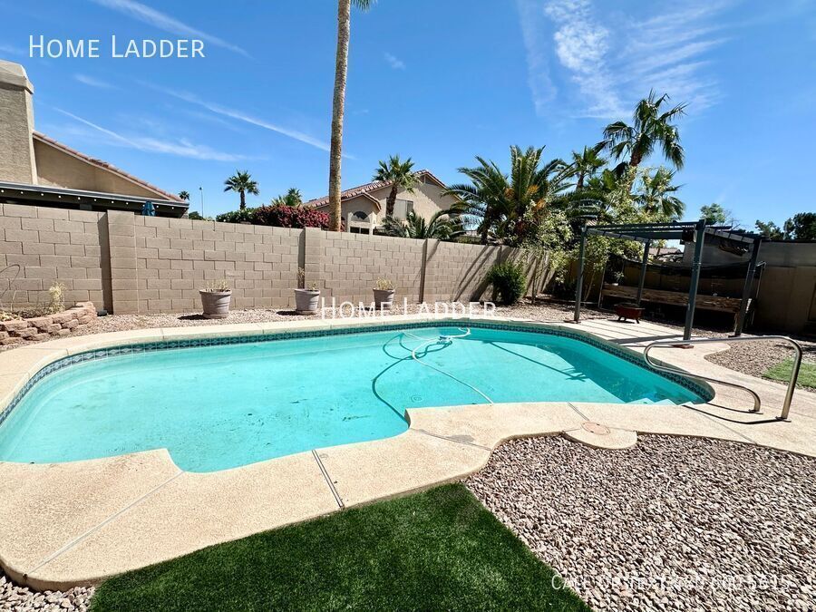 ** COMING SOON ** This charming 3 bedroom 2 bathroom home in Gilbert features low maintenance desert landscaping, 2 car garage, dedicated laundry room with washer and dryer included, vaulted ceilings with skylights, dining and living spaces, large bay windows, and brand new carpet with fresh paint throughout, you simply can't miss out on this one! The spacious kitchen offers ample cabinet and counter space, a pantry, and a charming island complete with a breakfast bar. Inside the gorgeous master bedroom you will find a full bath with his and her sinks, separate tub and shower, and a spacious walk-in closet. The expansive backyard includes a full-length covered patio, paved seating area, garden space and a refreshing pool perfect for the summer! Ideally located with quick access to the Loop 202, Loop 101, and US-60, commuting anywhere in the Valley is effortless. Just minutes from the heart of Downtown Gilbert, you'll enjoy a vibrant lifestyle with top-rated dining, shopping, and entertainment right at your fingertips. All Home Ladder residents are enrolled in the Resident Benefits Package (RBP) for $50/month, which includes renters insurance, credit building to help boost your credit score with timely rent payments, $1M Identity Protection, HVAC air filter delivery, our best-in-class resident rewards program, and much more! More details upon application. Additional monthly fees: $9 admin, $35 pet rent/pet. This property qualifies for our security deposit alternative—move in with less upfront cost! One-time fees: $49 application fee per adult, $149 pet application per pet, $195 administration, and a security deposit equal to one month’s rent. 12-18 month minimum lease term. If moving in between 7/1 and 01/31, the lease term shall be 18 months. If moving in between 2/1 and 6/30, the lease term shall be 12 months. Lease must commence within 21 days of application approval. After approval, security deposit must be delivered to our office by noon on the next business day. The lease must start Monday-Thursday and not on any federal/state holidays. Dryer Washer