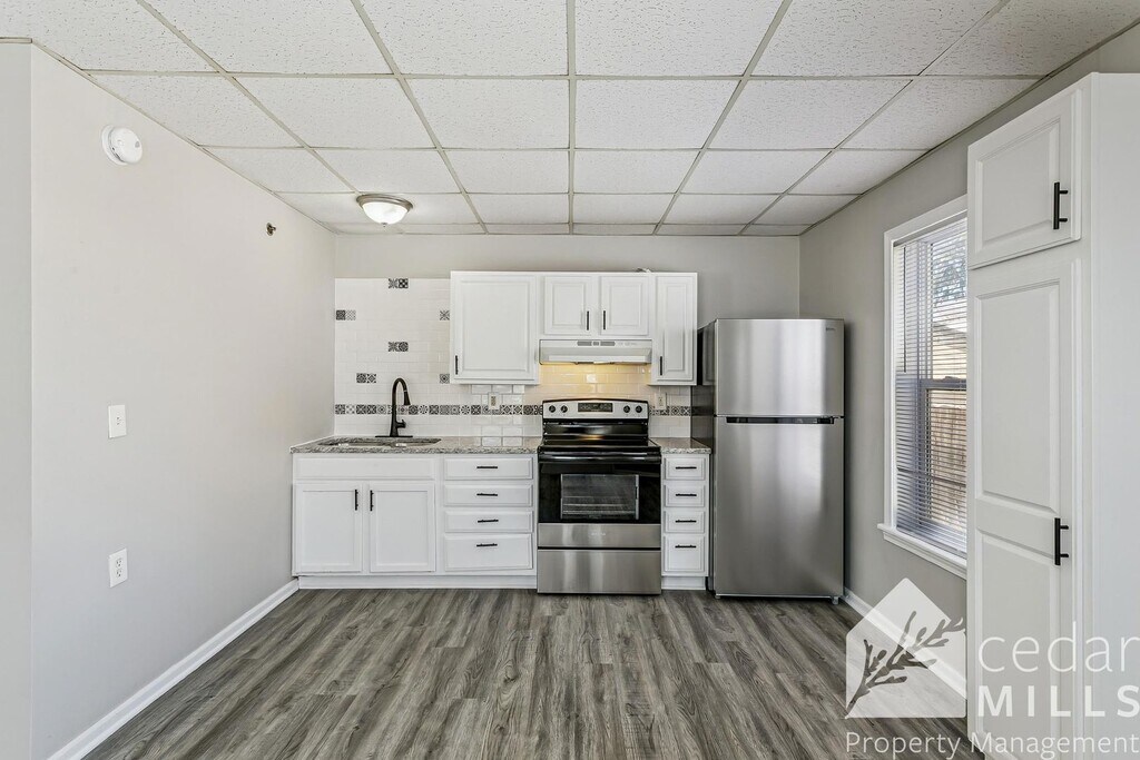 This LARGE 1 bedroom, 1 bathroom home has been recently remodeled. All new vinyl plank flooring and new paint throughout. The home features a long ramp up to the front door for wheelchair access. There is a nice open floor plan with the living/dining combo and kitchen being all in one space. A new range and refrigerator are included. Next to the living area, you will find a large bedroom and bathroom with a nice sized roll in shower. The closet doubles as storage and laundry. Lawn care is included in the rent. Tenant pays a monthly $35 water fee. This home is an add on structure and is located behind the house on the street. The patio and parking is shared. *This property has a wall unit for heat and air and is all electric Contact us at to schedule a viewing! Rent $650 + $35 water Deposit $650 + Move In Fee $150 Application fee $35/adult No pets No section 8