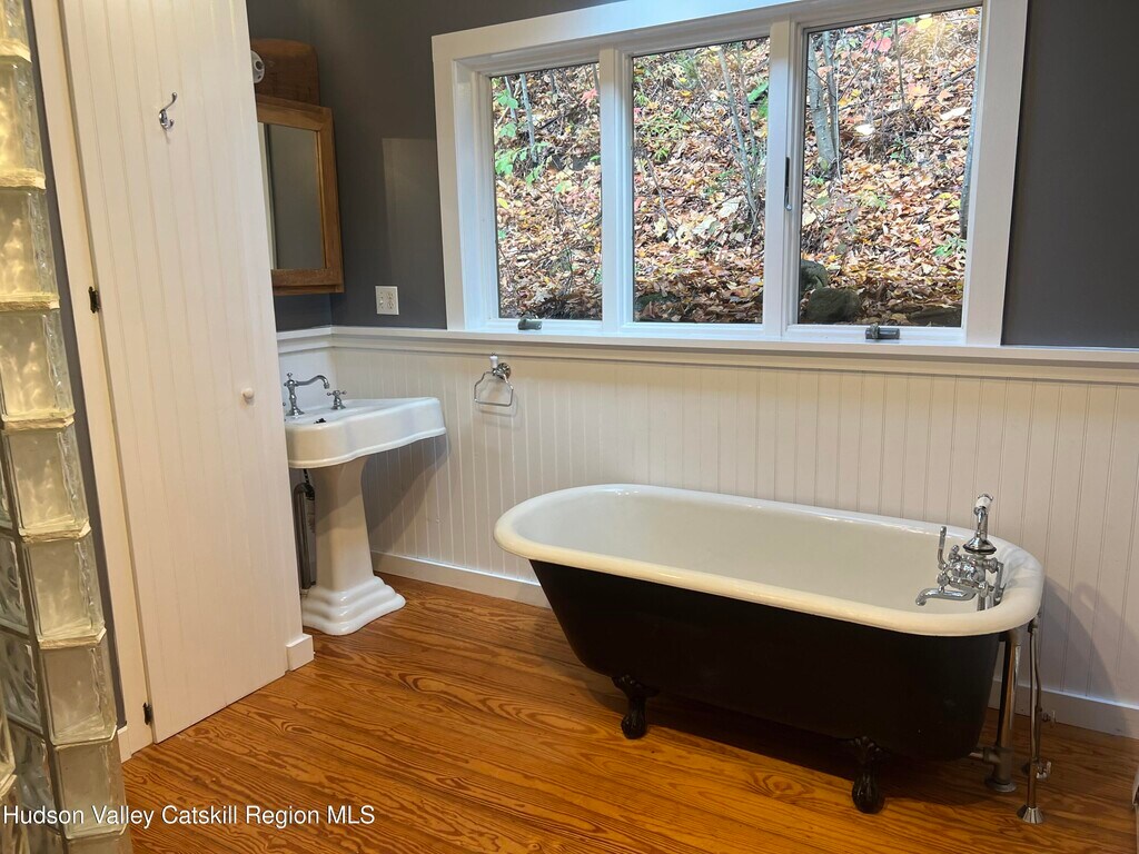 Lovely,bright home in desirable West Shokan. Two-bedroom,one bath with spacious living room with woodstove,dining room,separate laundry room. Bathroom has both shower and claw-foot tub. Screened porch is big enough for dining. Bluestone patio faces south for soaking up the sun. Garden boxes make growing your own produce easy. The woodshed holds plenty of firewood. The soothing sound of the Bushkill creek comes from across the road. The property encompasses 3 acres,so there's plenty of room to play and explore. West Shokan is in the Town of Olive,so residents are able to join the town pool for reasonable rates. This is in the Onteora school district. Ten minutes to the Ashokan Rail Trail,Route 28,supermarket,post office and school. The garage will not be for tenant use.