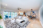 CUSTOM-BUILT WATERFRONT MASTERPIECE – Recently renovated 5-bedroom, 3.5-bath home with 2-car garage on a private cul-de-sac. This one-of-a-kind residence offers approx. 3,200 sq. ft. under air and 140 feet of waterfront with a 120-ft dock w/water & electric, providing space for a large boat and jet skis. Enjoy wide-water views, impact windows & doors, and an entertainer’s backyard with a heated pool, hot tub, summer kitchen, wet bar, tiki hut, gazebo, fire pit & covered patio..Perfect for gatherings or relaxed coastal living. Inside features an open layout, modern finishes, oversized beverage fridge, primary suite with a w/built-in bar. A true entertainment paradise where luxury meets waterfront lifestyle.- Property is available for Seasonal Rental as well as Annual