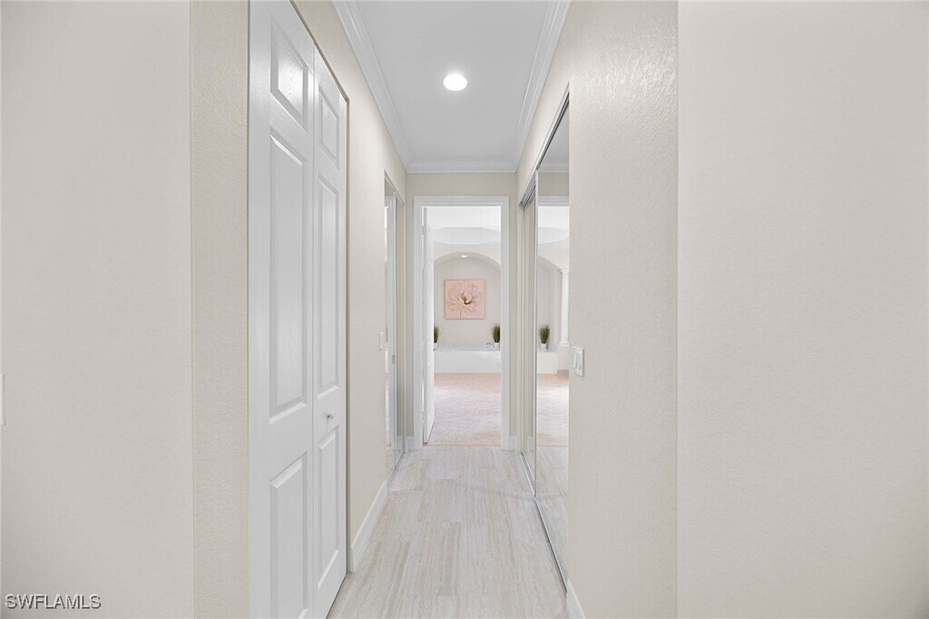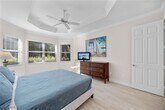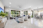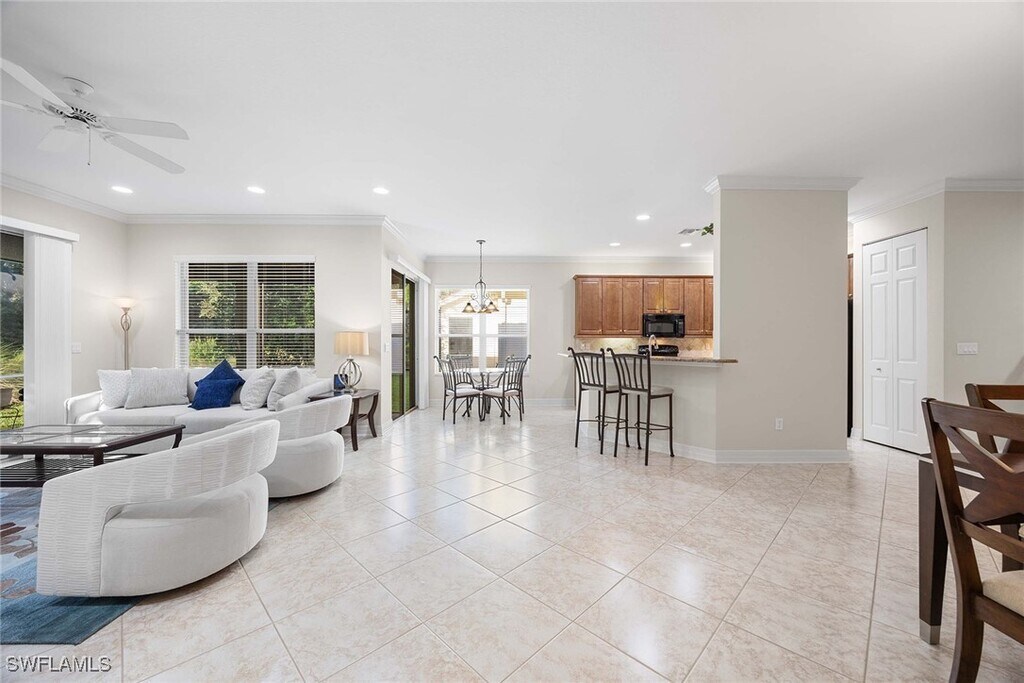 Discover the perfect blend of comfort,style,and convenience in this beautifully maintained Santiago Model home,located in the highly desired,amenity-rich,24-hour manned gated community of Marbella Lakes. This single-story residence offers three bedrooms and two and a half bathrooms and is perfectly positioned on a private lot with no neighbors behind,enjoying ideal southern exposure for natural light throughout the day.The open-concept kitchen features wood cabinetry,granite countertops,a separate pantry,abundant counter space and storage,a breakfast bar,and a dedicated eat-in dining area. The master suite is a serene retreat with a bay window bump-out,tray ceiling,and two walk-in closets. The master bathroom includes dual vanities,a large soaking tub,a walk-in shower,and a separate water closet. Two guest bedrooms share a full bath,and there is a convenient separate laundry room.Tile flooring extends throughout the main living areas,with carpet in the bedrooms and elegant crown molding adding a touch of sophistication. The screened and covered L-shaped lanai provides the perfect space for entertaining or relaxing while enjoying peaceful,private views.Marbella Lakes offers an unparalleled lifestyle with a full-time activities director and an 8,000-square-foot resort-style clubhouse featuring a fitness center,social hall,library,resort-style pool and spa,two Har-Tru tennis courts,pickleball courts,and indoor and outdoor basketball courts. Ideally situated,this community is just minutes from downtown Naples’ 5th Avenue and 3rd Street shopping and dining districts,Naples’ world-famous beaches,and the vibrant retail and restaurant scene at Mercato.