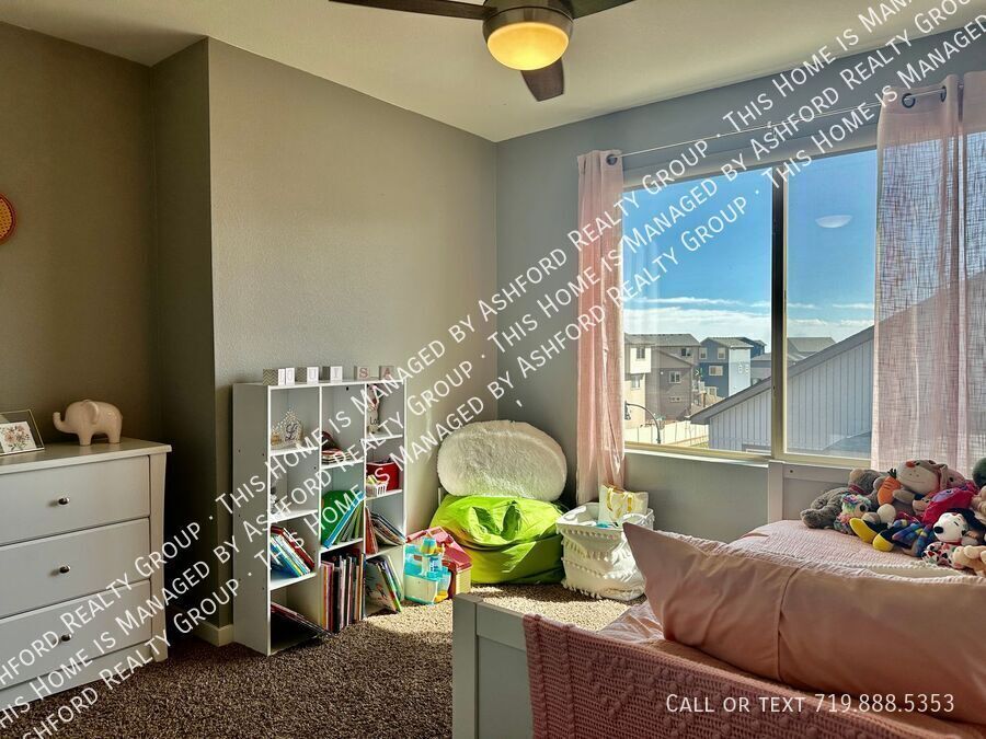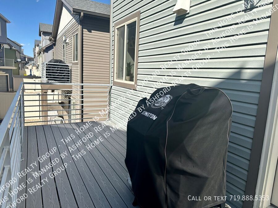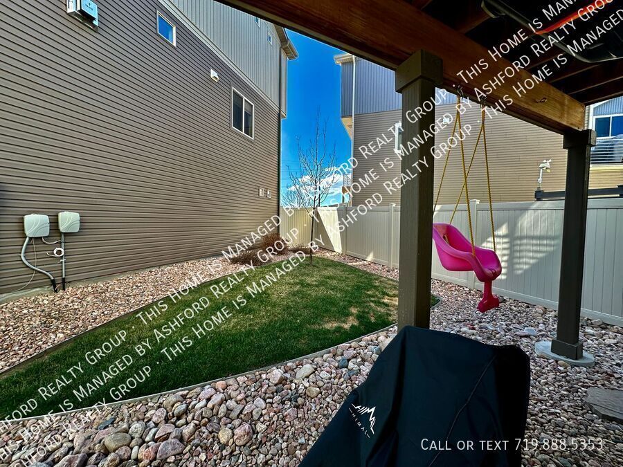 Beautiful 3 bedroom home in Banning Lewis Ranch. Engineered hardwood floors throughout the main level. There is an open concept kitchen/dining and living room. Large kitchen island, slate appliances, custom cabinets and a balcony right off the kitchen to enjoy morning coffee. Pre-wired for surround sound in the family room. Upstairs has a large master bedroom with adjoining bath and his/her sinks, two additional bedrooms and a full bath. Convenient upper level laundry room with washer and dryer included completes this floor. Downstairs you will find a spacious family room and a walk out to the private, fenced backyard. Banning Lewis has two outdoor pools, fitness center, pickle ball courts, dog runs, hiking trails, pocket parks and tennis courts. The community also offers two charter schools and a public elementary school. This community is located close to restaurants, shopping and entertainment and is a quick drive to Peterson Air Force Base or the Air Force Academy. HOA dues paid by owner. A PROSPECTIVE TENANT HAS THE RIGHT TO PROVIDE TO THE LANDLORD A PORTABLE TENANT SCREENING REPORT, AS DEFINED IN SECTION 38-12-902(2.5), COLORADO REVISED STATUTES; ANDIF A PROSPECTIVE TENANT PROVIDES THE LANDLORD WITH A PORTABLE TENANT SCREENING REPORT, THE LANDLORD IS PROHIBITED FROM: CHARGING THE PROSPECTIVE TENANT A RENTAL APPLICATION FEE; OR CHARGING THE PROSPECTIVE TENANT A FEE FOR THE LANDLORD TO ACCESS OR USE THE PORTABLE TENANT SCREENING REPORT. 2 Car Garage D 49 Disposal Fence Garage Range Sprinkler System Owner Vendor Views