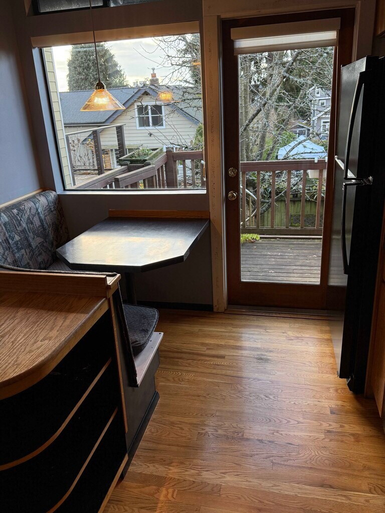 Meet a place you can truly call home. This 1700 sq. ft. 3-bedroom 2-bathroom craftsman home is a stones throw to cultural sites such as Green Lake and Woodland Park Zoo; and a short walk to eateries like Red Mill Burgers, Ridgewood, Sophon and many more on the main drag. This 1913 craftsman features new air conditioning on the main level in addition to a newer dishwasher, downdraft gas range, comfortable breakfast nook in a stylish kitchen with a view towards the sound. The house has two decks (one upper level; one lower), French doors, wood/bamboo floors and skylights on the main level. The lower level features two bedrooms (or offices), a second full bathroom and a new full sized washer/dryer set. The home also features incredible storage space. Enjoy the hot tub and luscious landscaping in a fenced in backyard. Getting around couldn't be easier if you're without a car. You're just feet from the #5 bus line. This home will be available January 1st. Each adult applicant will need to pay $40 for a background check. The successful renter will be required to put down a refundable $4000 security deposit as a condition for a one-year lease. All utilities will be the responsibility of the renter. These pictures give you an idea of your new home. Let me know if you'd like a virtual tour and/or real world one.