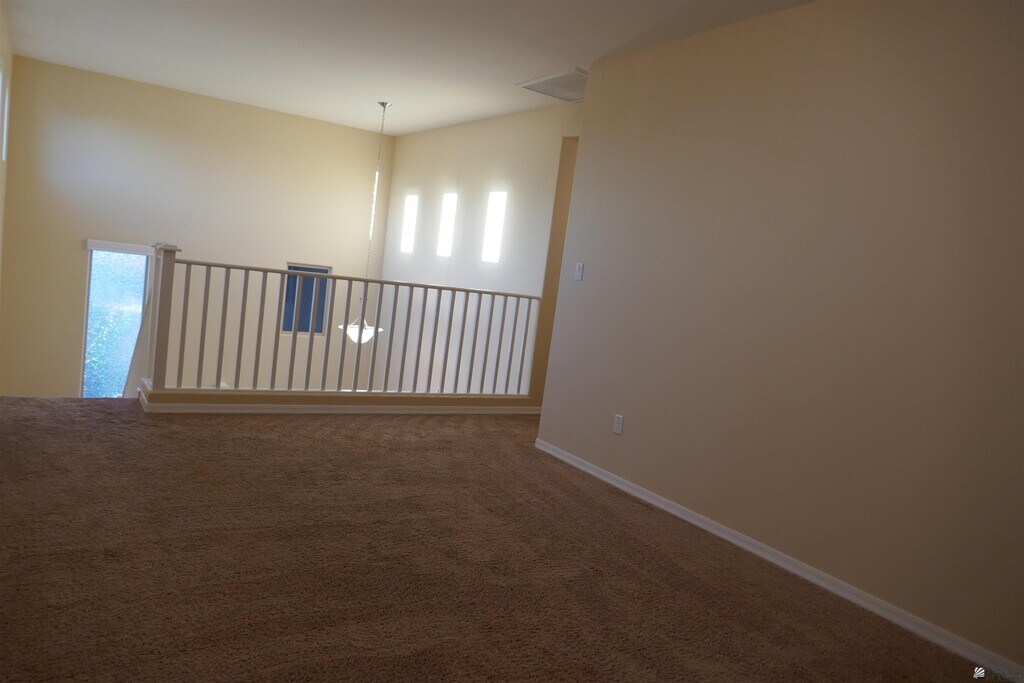 This is a great 4-bedroom, 3-bath home located in the desirable Araby Crossing neighborhood. The residence features a modern interior with several popular upgrades and a practical two-story layout. The kitchen includes granite countertops, a center island with a breakfast bar for casual dining. The great room and lower floor hallway have tile flooring, which is both durable and easy to maintain. The home's floor plan offers flexibility with one bedroom and a bathroom located on the first floor. This is ideal for guests or multi-generational living. Upstairs, you will find three more bedrooms and two additional bathrooms. An upstairs flex room provides extra space for a home office, playroom, or media room. Situated on a quiet cul-de-sac and the low-maintenance landscaping simplifies yard work and is well-suited to the desert climate. A solar energy system, installed during construction, is intended to reduce the electric bill by 30%.