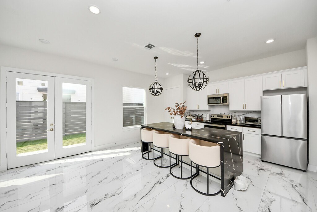 This stunning 3-bedroom,2.5-bath home combines modern elegance with timeless design. The open-concept living area features sleek flooring,designer lighting,and abundant natural light. A chef’s kitchen showcases quartz countertops,custom cabinetry,and striking white and gold accents. Bathrooms are spa-inspired with accent walls,premium finishes,and sophisticated gold hardware. The primary suite offers a serene retreat with a luxurious ensuite bath and walk-in closet. Blending style and functionality,this home is ideal for entertaining or relaxing,with refined details inside and a beautifully finished exterior. MLS# 84518046