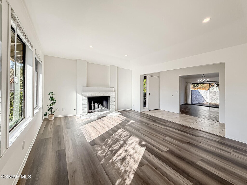 Welcome to this beautifully maintained single-story condo in the highly desirable gated community of Northgate in Westlake Village. This home is ideally situated in a quiet, woodsy setting with peaceful treetop views, this 3 bedroom, 2 bath home is light and bright, and the open floor plan features new vinyl flooring, fresh interior paint, recessed lighting, new modern chandelier, window coverings and upgraded patio pavers to relax with your morning, coffee or evening glass of wine. The spacious living room offers vaulted ceilings and a cozy fireplace, while the kitchen showcases granite countertops, gas range, microwave, new dishwasher, refrigerator, and opens along with the family room and primary suite to the private, relaxing patio in two car garageThe primary suite includes a walk-in closet and dual-sink vanity, with beautiful shower in bathroom and quality finishes throughout and smooth ceilings. In-home laundry with washer and dryer included. The two-car garage features easy access to patio and sde door entry to kitchen.Enjoy tree-lined streets, walks, and community pool and spa amenities -- all with convenient access to the 101 freeway, shopping, restaurants, theaters, and award-winning schools. A rare combination of privacy, upgrades, and location.