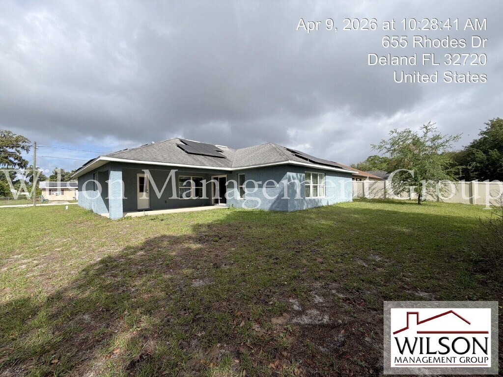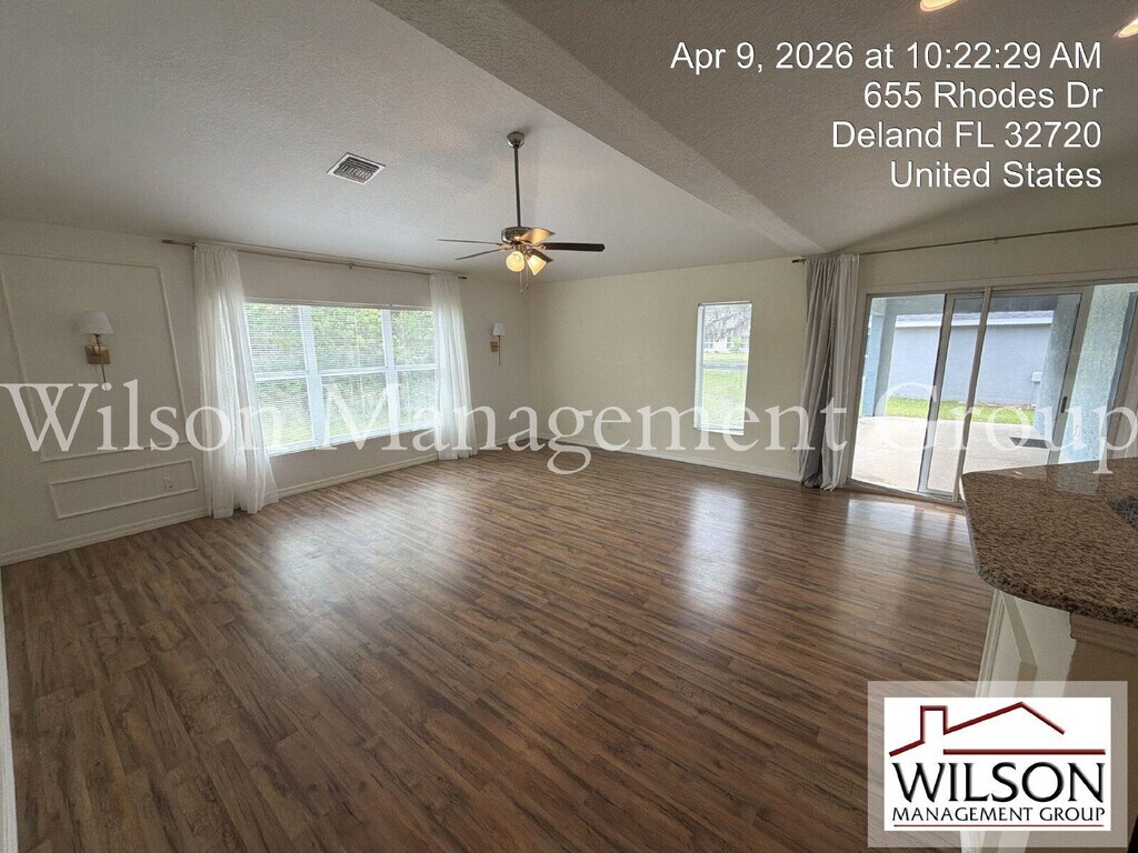 A VIRTUAL TOUR VIDEO IS AVAILABLE ON OUR WEBSITE! This property is managed by Joseph English at ext. 219. Upon entering this 3-bedroom, 2-bath, spacious home, you step into the formal living and dining rooms and notice the high ceilings and abundance of natural light that make for a bright and open feel. The kitchen will bring out the gourmet chef in you, featuring granite countertops, stainless steel appliances, recessed lighting, and a breakfast bar. The kitchen opens nicely to the huge family room with plenty more windows and a sliding glass door to the back patio. The substantial master bedroom offers angled windows, wainscoting accent walls, and a beautiful ensuite bathroom. The master bathroom boasts a granite double vanity with modern mirrors and lighting, a garden style tub, and tastefully tiled walk-in shower. There are also two additional ample sized bedrooms, and a second bathroom with granite vanity and nicely tiled shower. This amazing home is 2,513 total square feet, with 1,879 under air. It also offers solar power, a two-car garage, laundry room with washer and dryer hook ups, a large covered back patio, and a large backyard. Conveniently located minutes from downtown Deland with its many restaurants, bars, and entertainment venues. Inquire about this lovely home today! All information is deemed reliable, but not guaranteed. Wilson Management Group does not discriminate on the basis of race, color, religion, national origin, sex, disability or familial status. Animals By Owner Approval. Additional Security Deposit: $300 per approved animal Nonrefundable Animal Fee: $200 per approved animal All Wilson Management Group residents are enrolled in the Resident Benefits Package (RBP) for $50.00/month as additional rent, which includes renters insurance, credit building to help boost your credit score with timely rent payments, our best-in-class resident rewards program, $1M Identity Protection, move-in concierge service making utility connection and home service setup a breeze during your move-in, online resident portal for easy online rent payments & maintenance reporting, HVAC air filter delivery (for applicable properties), and much more! More details available upon application. *Should Wilson Management Group stop managing the property during your tenancy, the Resident Benefit Package will be terminated. Property Manager: Joseph English TO APPLY ONLINE, please go to our website. APPLY NOW: View All Listings: By submitting your information on this page you consent to being contacted by the Property Manager and RentEngine via SMS, phone, or email.