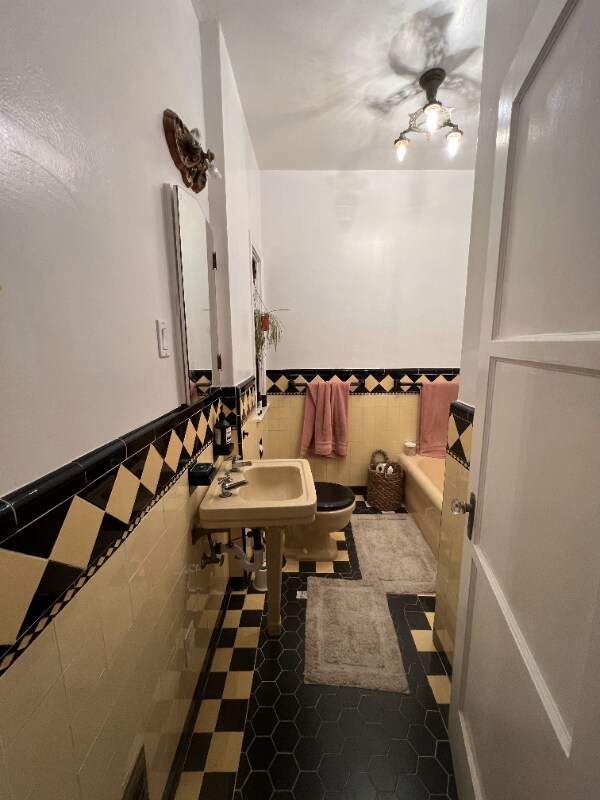 Property Id: 2160014 Perfectly situated in the Museum District and close to Hancock Park, Larchmont Village and Beverly Hills, this 1930s Art Deco 1 Bedroom/1 Bathroom + Office/Den features large windows and 14-foot ceilings in the living room, gleaming hardwood floors, built-in cabinetry and alcoves, and period hardware, chandeliers, and wall sconces throughout. The dining room showcases a three-dimensional ceiling and seamlessly flows into the kitchen where antique yellow and black Deco tiles juxtapose bright white cabinets, a five-burner stainless steel stove/range, and a modern refrigerator creating the perfect balance of old meets new. The yellow and black Deco tile continues in the bathroom with a pedestal sink, sunken bathtub, and Roman shower. The generous bedroom can easily fit a king-size bed. The bonus office/den provides a built-in desk, walk-in closet, and built-in wardrobe and drawers - perfect for remote or hybrid work.