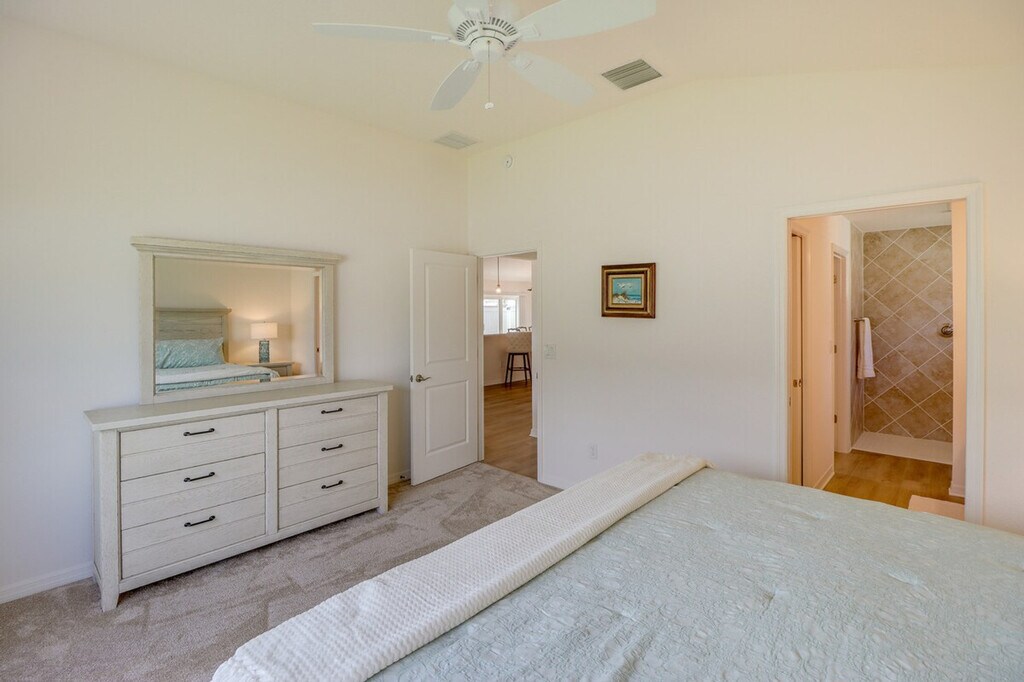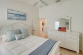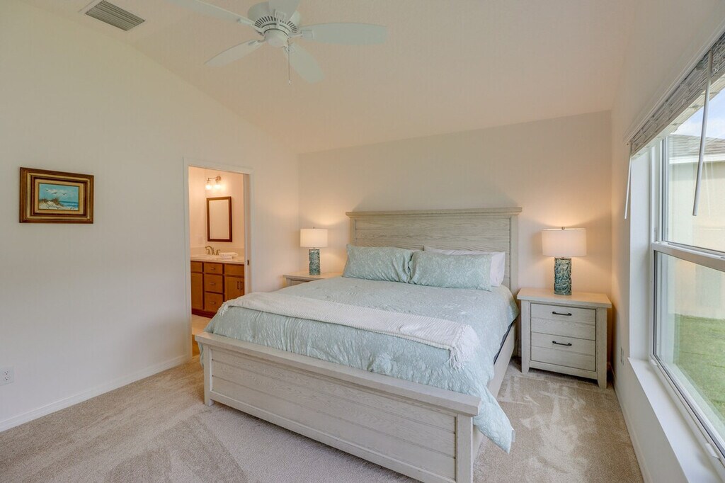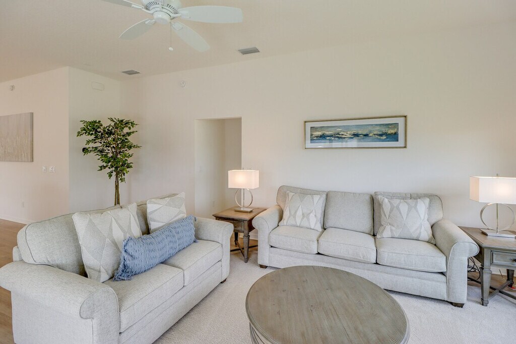 Feel at home in this exciting vacation rental in The Villages, a single-story house with step-free access. This 3-bedroom, 2-bath house is perfect for a memorable stay in the Sunshine State. This house features in-unit laundry, a fenced backyard, a smart TV, a dining table, a walk-in closet, an en-suite bathroom, and ceiling fans. The kitchen is equipped with a refrigerator, coffee maker, stove/oven, microwave, dishwasher, dishware and flatware, and cooking basics. Enjoy the screened porch with patio seating. Enjoy the community amenities, including 2 outdoor pools, tennis and pickleball courts, shuffleboard, bocce, billiards room, darts, cornhole, and astronomy pads. Parking is available in the garage for 2 vehicles and in the driveway for 2 vehicles. Located 8 miles from Brownwood Paddock Square, this house offers access to incredible community amenities. Tee off at nearby golf courses, enjoy the pickleball and tennis courts just down the road, or head out to explore surrounding nature preserves. There is no smoking, pets, events, parties, or large gatherings allowed. Guests must be at least 25 years old to book. A photo ID may be required upon check-in. [SI]