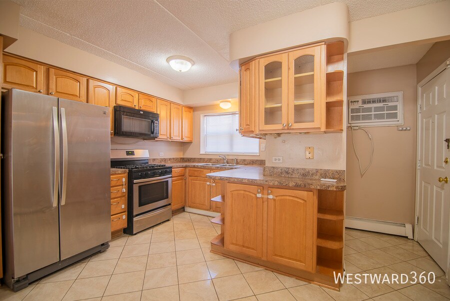 Wow! Super spacious 2BD/2BA condo with huge private terrace, included parking space, and in-unit laundry! Plenty of living and storage space, plus gas included. Enjoy condo living in a great Schorsch Village location - close to Cafe Prague and Frank's Pizzeria, as well as Target and the "HIP" (Harlem Irving Plaza). Available for flexible lease start.