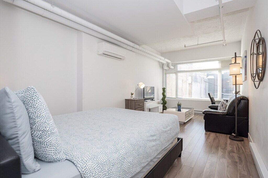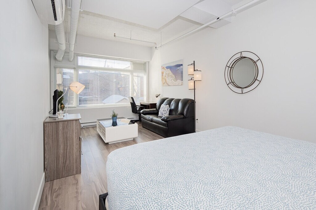 Discover the epitome of modern living in this brand-new penthouse apartment, nestled in the heart of Rosemont Petite-Patrie. This vibrant neighborhood pulsates with energy, offering a unique blend of shopping, entertainment, and locally-owned cafes. Boasting contemporary design, luxury amenities, and top-notch security, this penthouse promises an unparalleled experience of comfort and value. The apartment accommodates two guests and features a studio room with a queen bed and a full bathroom. Enjoy the convenience of an elevator and access to a rooftop terrace and laundry room. After visiting some exceptional homes ourselves, we've strived to make this apartment as welcoming and cozy as possible for our guests. Relax with a smart TV for your viewing pleasure and stay seamlessly connected with high-speed Wi-Fi throughout your stay. We offer a variety of cleaning services that include biweekly or monthly. If you require this service, please contact us for more information. This service has an extra charge. No parties of any kind or loud noises that can alter the harmony of residents are allowed. No smoking, including cannabis and cigarettes, inside the apartment, balcony, or the building. Please care about your home away from home. [SI]