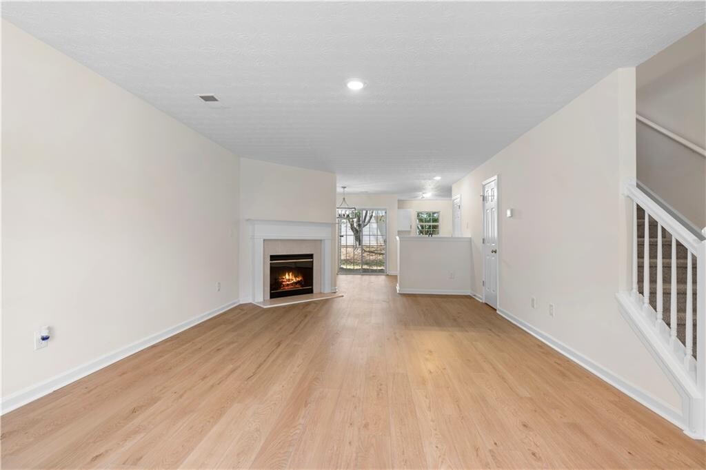 Come see this beautifully updated townhouse located in the gated Arbor Gate community. The main level offers an open-concept layout,seamlessly connecting the kitchen,dining,and living areas—perfect for both everyday living and entertaining. The kitchen features crisp white cabinetry,stone countertops,stainless steel appliances,and stylish black hardware for a modern touch. The spacious living room feels warm and inviting with a cozy fireplace as its centerpiece. Upstairs,you’ll find two generously sized bedrooms,each with its own updated ensuite bathroom featuring new vanities. Fresh paint and new flooring throughout the home give it a clean,modern feel—ready for you to move right in.