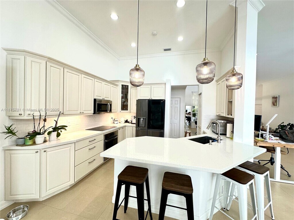 Stunning 1 Story home with the best lakefront views in the desirable community The Lakes. Amazing pool with Jacuzzi. Spectacular home has 2,608sf. 5 Bedrooms, 3,5 Bathrooms, open floor plan with high volume ceilings. Update kitchen with stainless steel appliances and quartz countertops. Large primary suite. Porcelanato flooring flows through living are and laminate in the bedrooms. Smart home with Nest Thermostat. Spacious backyard with covered patio. Heated pool and Jacuzzi. Accordion shutters. The property is offered furnished or unfurnished.