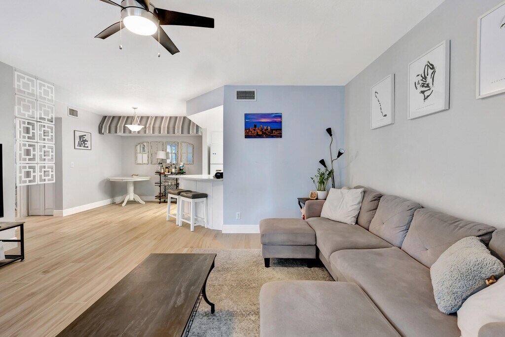 Freshly upgraded! Ground floor/end now available in Chasewood. Sophisticated 2 Bedroom/2 Bath Corner Unit turnkey move-in ready. New and upgraded open concept kitchen with quartz countertops and grey tile backsplash. Master Bedroom has a large Walk-in closet. Living/Dining room,All Hurricane Impact Windows and Doors,Light vinyl plank flooring and ceiling fans throughout,Newer appliances,Washer/Dryer in unit,Beautifully screened in porch with ceiling fan and roll down blinds for privacy,new patio furniture,and storage closet. Brand new window treatments throughout. Two close reserved parking spots and unit is very close to Community Pool,Clubhouse,Tennis Courts,BBQ and Picnic area,shopping,Publix,Beach and 1-95. Allowed 1 Dog up to 30 lbs. Boat Storage & Car Wash on property. MLS ID R11163478