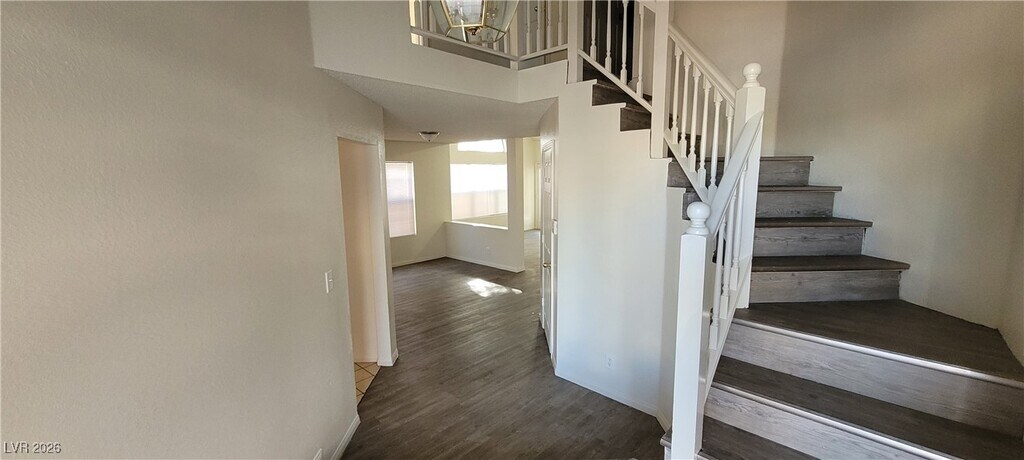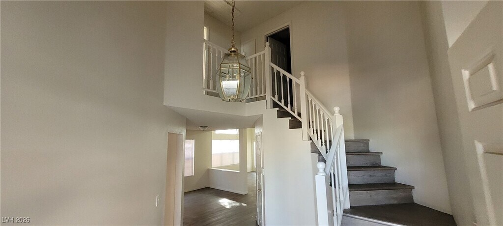 Please excuses the mess as we put the finishing touches on this home Fresh new Carpet, Paint, and flooring This home is perfect for entertaining the true las Vegas home.. the first floor hosts a Bedroom and bath for the guests. the 3 other rooms are up stairs. This home will not disappoint with the flowing floor plan add an open feeling. The yard has a great big covered patio and Dessert landscaping is fast and easy to maintain.