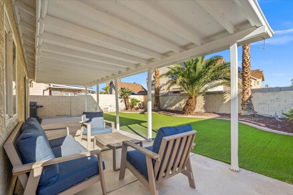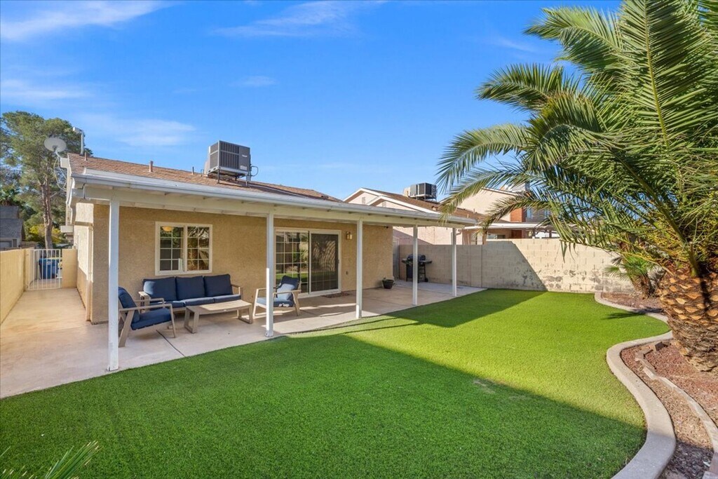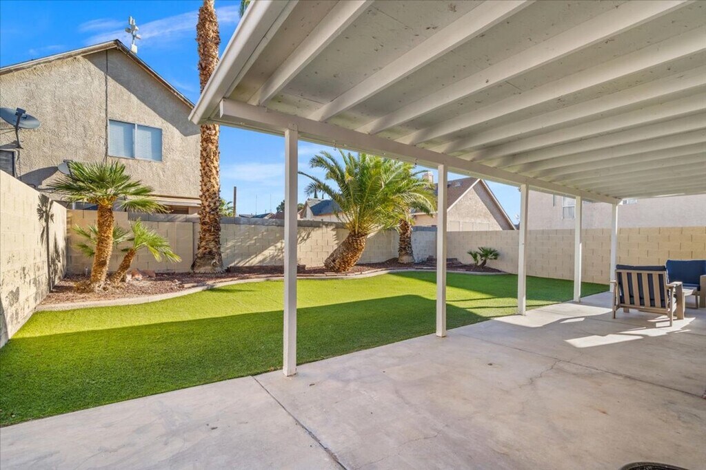 Step into this beautifully newly listed single-story home in Las Vegas, offering 3 spacious bedrooms and 1 well-appointed bathroom. Designed for both comfort and functionality, the home features a separate living room and dining area—perfect for relaxing or entertaining. The inviting kitchen flows seamlessly into the living spaces, all highlighted by stunning tile flooring throughout—completely carpet-free for a clean, modern feel. Natural light fills the home, complemented by ceiling fans in key areas, while central A/C and heating ensure year-round comfort. Enjoy the added convenience of an in-unit washer and dryer. Outdoors, unwind under the covered patio or take in the beautifully landscaped backyard, complete with low-maintenance turf—ideal for effortless outdoor living and entertaining. We require Resident Benefits Package includes Utility Concierge, Renters Insurance, Credit Reporting, Fraud Protection, Tenant Rewards, Home Purchasing Assistance and more for $45/month. Rekeying and Cleaning fee is $450. We support fair housing rentals, free from discriminatory practices or policies. Admin fee of $95 if approved.