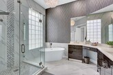 Don't miss the opportunity to rent this cheery & tastefully remodeled one-story home of 3 bedrooms plus an office & 2 1/2 baths -- spacious with an open floor plan offering plenty of sunlight. Features include volume ceilings; neutral porcelain tile & carpeting; an inviting Living Room wet bar; and a spacious kitchen with white 42'' shaker cabinetry, quartz countertops, elegant tile backsplash & stainless steel appliances. The powder room & primary bathrooms have been beautifully remodeled with contemporary flair with the primary featuring porcelain tile on the floors & walls,vanities of tigerwood finish & a free-standing tub. Sliding glass doors open out to a totally private tropically landscaped patio which features an covered lanai and an open patio with a freeform pool.