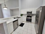 Lovely 3 bed, 2 bath villa with huge vaulted ceilings. The kitchen is open to the dining room and living room area. Appliances are all fairly new and stainless steel. Vinyl flooring throughout. Freshly painted throughout. New master bath vanity. Cable included. Pets welcome, just across from Park Vista High. Community pool, tennis and more.