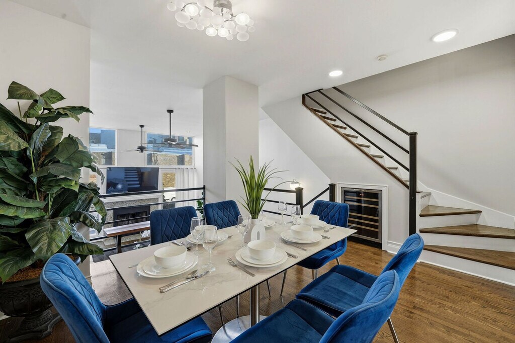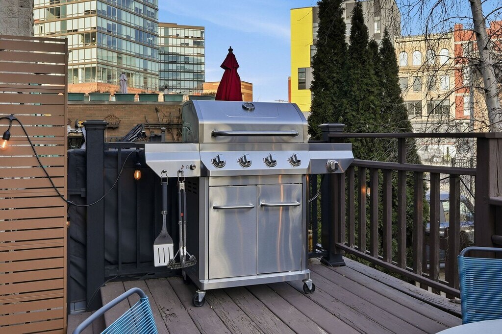 Welcome to your modern Chicago retreat in the heart of River West. Feel at home in this spacious four-bedroom townhouse with 3.5 baths. This beautifully designed townhouse spans nearly 3,000 sq ft across multiple levels and features a bright, open-concept living area adorned with curated art, a fully equipped kitchen with stainless steel appliances, and a charming outdoor space with a BBQ grill. For a seamless stay, enjoy plush mattresses and fresh hotel-quality linens, a large flat-screen TV for streaming, cookware, utensils, and essentials. Extra amenities include in-unit laundry, high-speed Wi-Fi, and central air conditioning. Experience the best of both worlds in the vibrant River West neighborhood: a peaceful residential setting with unbeatable access to Chicago’s top attractions. This home is perfectly situated near public transit, major highways, downtown, Fulton Market, and West Loop restaurant hotspots. Coffee shops, galleries, and neighborhood favorites are just a walk away. No parties or events are allowed, and violations will incur a $1,000 fine. Smoking is prohibited inside the apartment, and violations will incur a $500 fine. Tampering with noise monitors or cameras will result in a $500 fine. Includes designated workspace areas, ideal for remote work. Registration Number: R2 [SI]