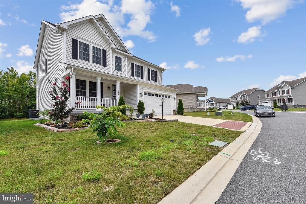 Beautiful home in sought after Bulle Rock community. This lovely home has so many features including an inviting front porch, main level private office, gourmet kitchen with a massive island and upscale pendant lights, pantry, breakfast/sun room, gas fireplace and high ceilings. When you head upstairs you find a second larger living area which could be used as another family room, homework station, home office or more. All four spacious bedrooms upstairs feature ceiling fans and most have built-in closet systems. There is a separate laundry room with storage. Both bathrooms have dual sinks and the primary features a soaking tub. The lower level is partially finished with a large rec room with high ceilings throughout. The unfinished area has rough ins for plumbing to add a bathroom as well as an upgraded egress window if you wanted to add a fifth bedroom or expand the finished space. You will find plenty of extra touches through the home including the smart thermostat, rod iron spindles, upgraded lighting and even an electronic car charger in the garage. Don't wait to make this turnkey property your next home. Resort style living. Best deal in Bulle Rock!