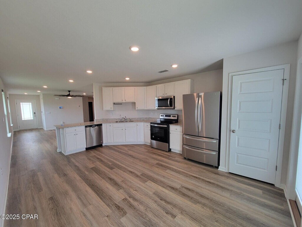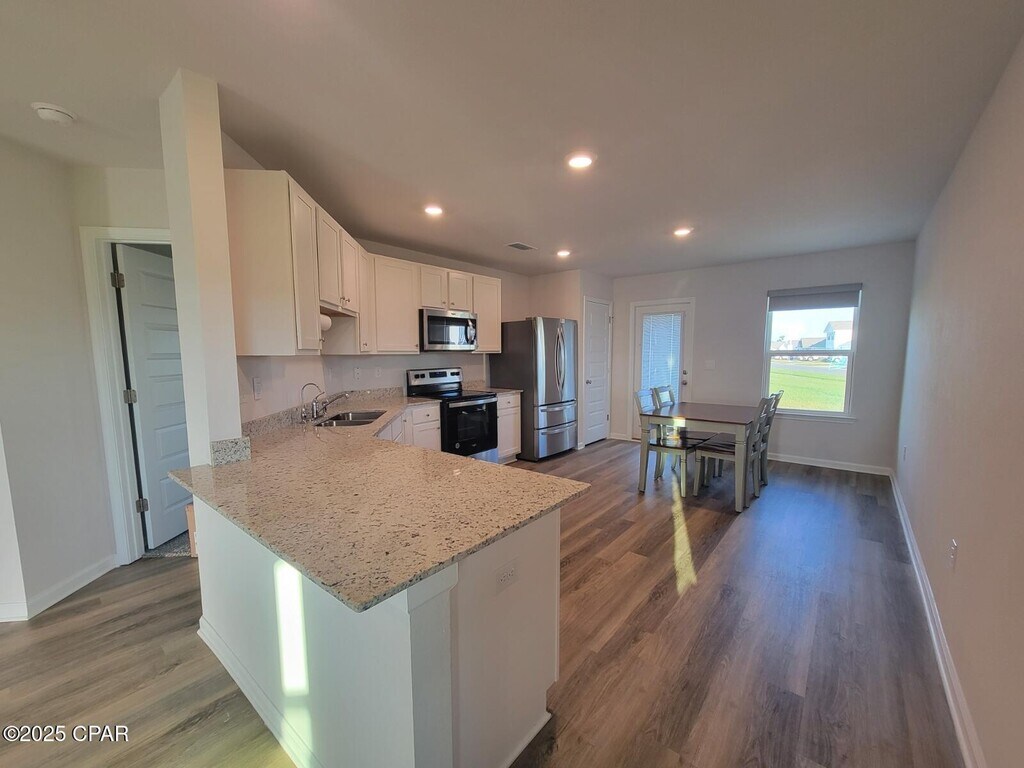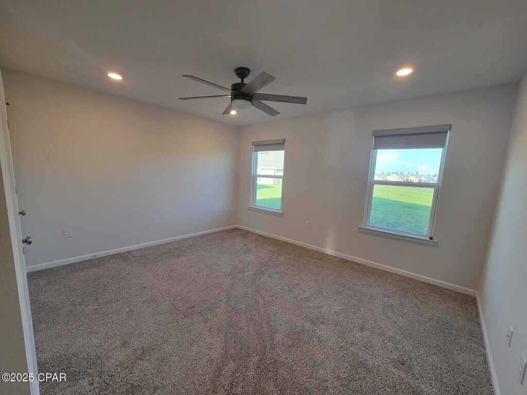 Welcome to the Liberty Subdivision! One of Panama City's newest and popular communities. This beautiful contemporary home is on a large corner lot and has 3 bedrooms, 2 full baths with linen closets, and 2 car garage. The kitchen comes equipped with stainless steel appliances, plus a generous size pantry, and breakfast bar for seating. Granite countertops in the kitchen and both bathrooms. There is vinyl flooring in the main living areas, and carpet in the bedrooms. The primary suite is spacious and has a walk-in closet, plus a secondary full size closet. The master bathroom features a double vanity, a soaking tub, and separate shower. Laundry room w/ washer & dryer connections. There is a open patio for grilling. Double pane windows, featuring pull down sun shades to provide energy efficiency. Within the neighborhood there is a community center with a fully equipped gym, a resort-style community pool, pickleball courts, and fun filled playground and splash pads for the kids. At the community center there is also the outdoor grilling kitchen perfect for hosting family and friends. Convenient to shopping schools, beaches, Tyndall AFB and more. Pets subject to approval by owner and a pet fee or deposit may be required. Call to schedule a tour!