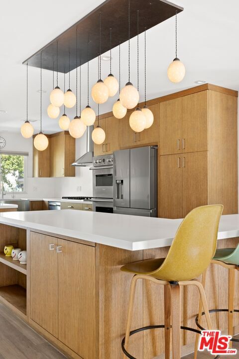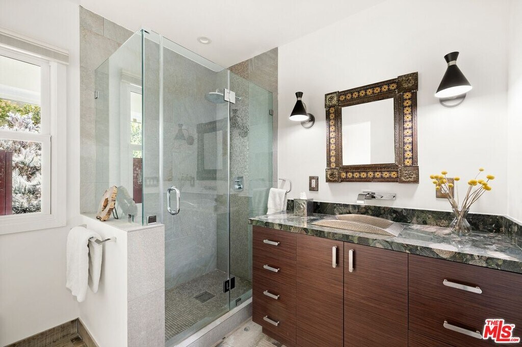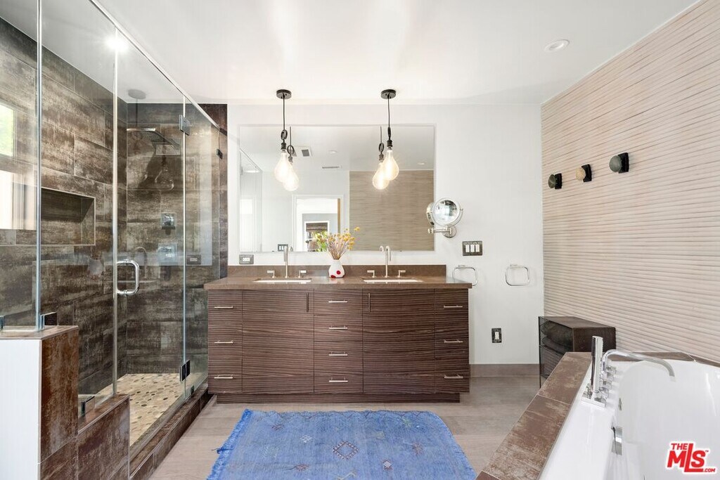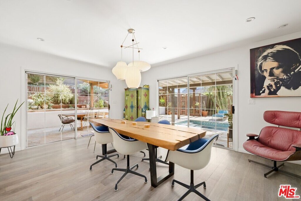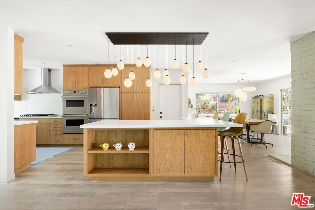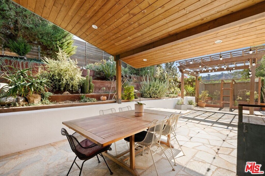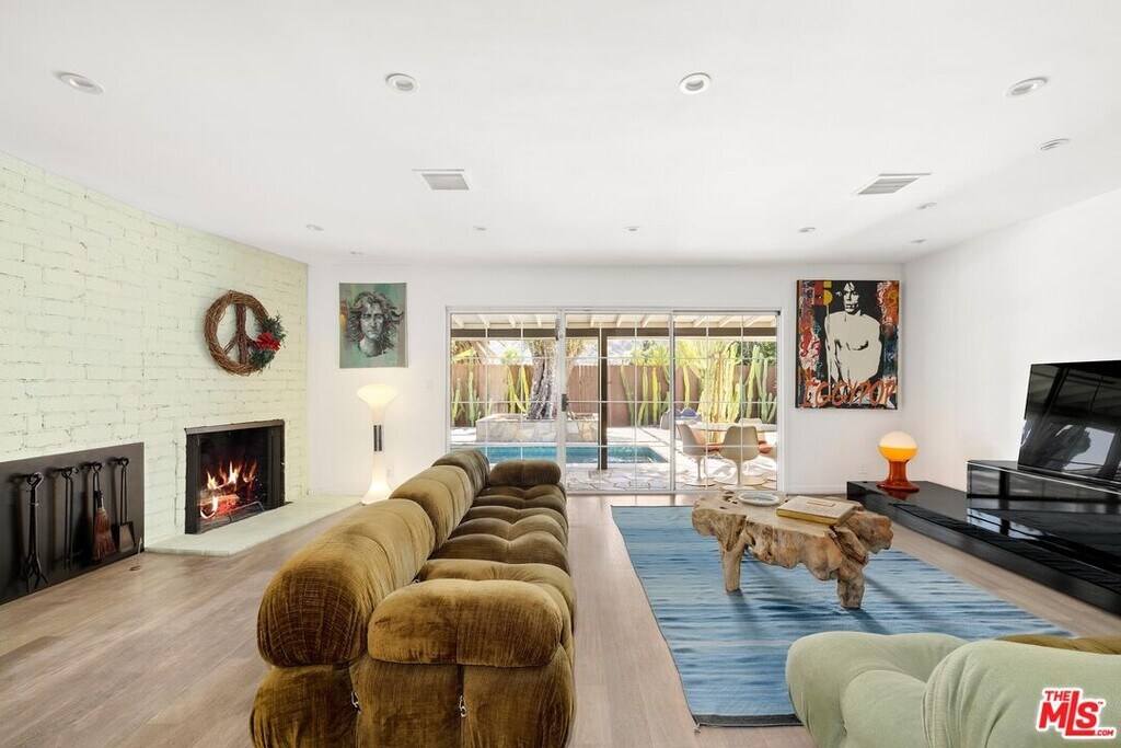 Located in Lakeridge Estates, a mid-century neighborhood near the Lake Hollywood Reservoir, 6570 Lakeridge Road is a 2,201 square foot ranch-style home that has been thoughtfully redone for modern living. Sunlight moves easily through an open floor plan that leads to multiple outdoor areas designed for entertaining. A new pool is ready for the summer heat and evenings spent under the stars. The large living and formal dining rooms share a two-sided fireplace, one functional and one decorative, and connect to a reimagined kitchen with a quartz-wrapped island, Viking double ovens, custom ventilation hood, and fixtures that recall the home's original design era. The primary bedroom opens directly to the pool deck. Its en-suite bathroom includes a soaking tub, step-in shower, dual sinks, and recently installed chrome fixtures. Two additional bedrooms share a second bathroom, with one room offering direct access. An oversized two-car garage with direct entry includes built-in storage and a raised laundry platform with side-by-side LG washer and dryer, installed two years ago. A gated perimeter with driveway and pedestrian gates adds privacy and extra off-street parking. A five-camera security system and 24-hour live neighborhood patrol offer additional peace of mind. Set on a 12,027 square foot lot, the property is located near hiking trails, the Hollywood Bowl, studios, and markets including Whole Foods and Trader Joe's. This is Southern California living with clarity and intention. MLS# 25607205