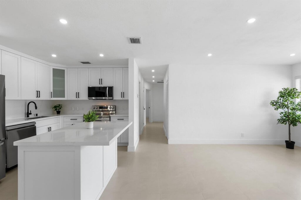 Completely remodeled with beautiful finishes, this 4 bedroom, 3 bath home with it's own private pool is centrally located in a prime Hollywood neighborhood. Over 1,700 square feet of living space with all new appliances, all new bathrooms... and yes, there are three! Please check out the photos to see just how beautiful this home really is. Schedule a visit today. Please note that this home does NOT include the garage space. The garage area is an efficiency that is completely separate. But don't worry, there are no shared spaces. The pool, laundry and patio space is fully enclosed with a new metal privacy fence and all included in this rental. Virtual tour coming soon, check back or call for info.