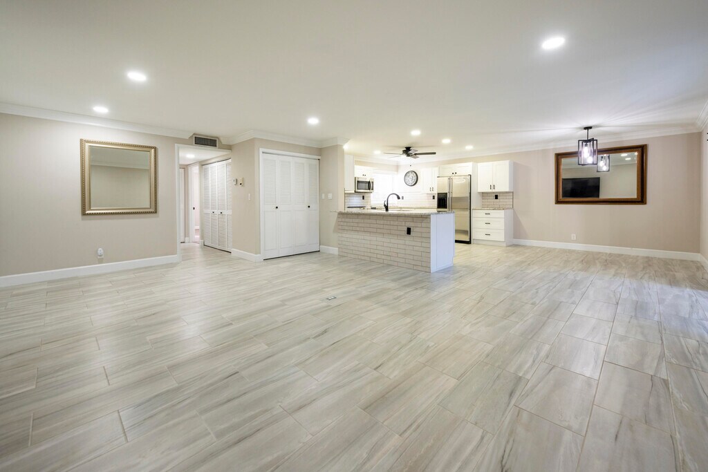 First mo. & security deposit moves you in. Beautifully remodeled 2/2 first floor condo located in the quiet 55+ community of Woodhaven in Boca Del Mar. Situated in central Boca Raton close to dining, shopping, and public parks. This condo has plenty of living space with a large open kitchen, 3 walk-in closets plus full-size washer & dryer and extra utility closets. Residents enjoy a quiet setting with two community pools. Rent includes one assigned parking space with extra shared guest parking, basic cable, water, and trash pickup. This condo is offered as a 1-year lease, unfurnished.