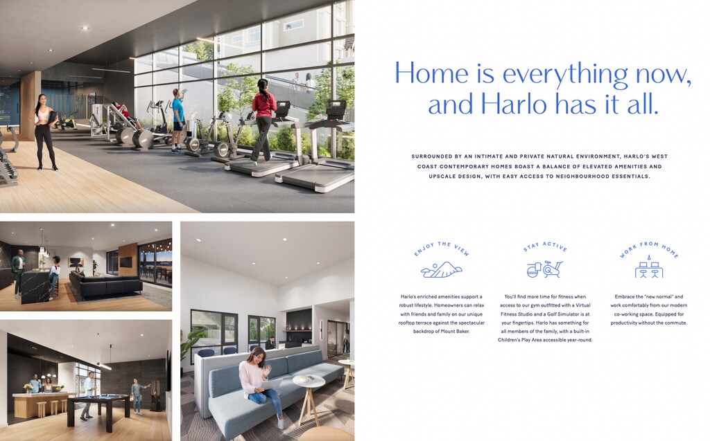 Now available for rent – a stunning 1 bedroom plus den, 1 bathroom unit at Harlo with 1 parking stall and storage locker, featuring a gas range, stainless steel appliances, and a spacious third floor with private tree side views. Experience upscale living in this beautifully designed residence that combines modern elegance with everyday convenience. Harlo offers a vibrant community lifestyle with exceptional amenities. Take in panoramic views from the rooftop terrace, ideal for socializing in the stylish lounge equipped with a chef's kitchen and BBQ area. Stay fit in the fully-equipped gym, virtual fitness studio, or unwind with a round in the golf simulator. Perfect for families and outdoor lovers alike, Harlo includes a children's play area, community garden plots, and direct access to the scenic Clayton trail network. Secure underground parking, EV-ready stalls, and bike storage provide added ease and peace of mind. With thoughtfully curated interiors and premium finishes throughout, this unit delivers the perfect balance of luxury, comfort, and functionality. One Year Lease | Utilities Separate | Screening Required Property Listed by Four Seasons Property Management Ltd.