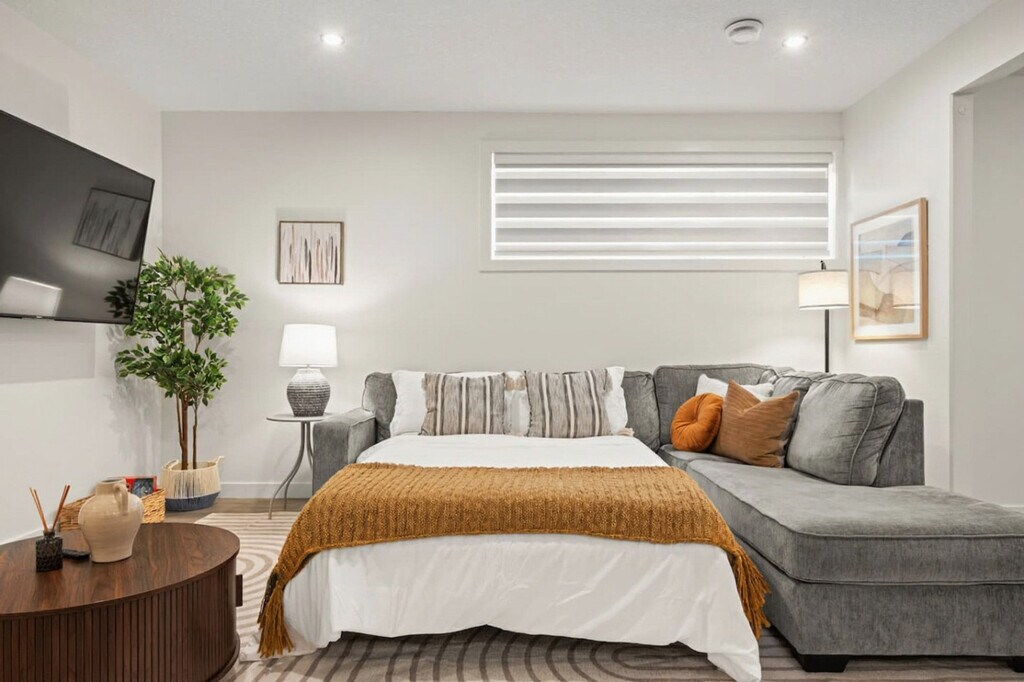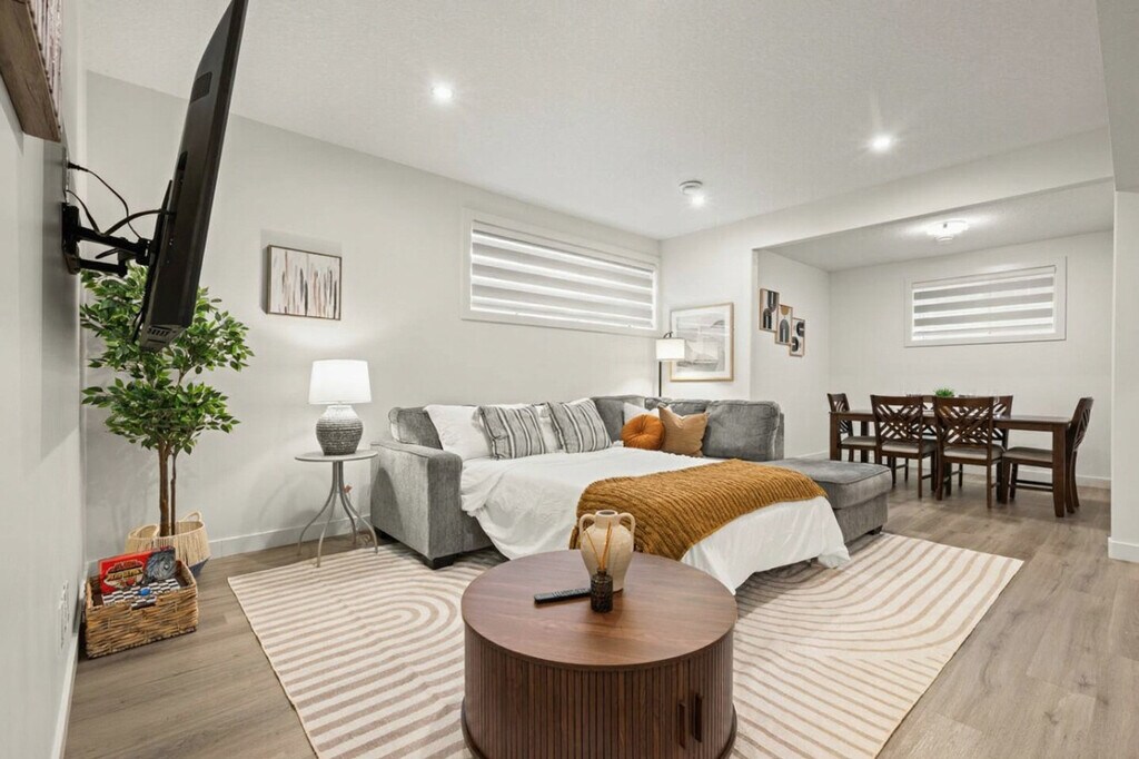 The advertised rate of C$2,812/month is the lowest available price, based on a 1 month(s) stay with a move-in date of April 5, 2026. Rates vary depending on the duration of stay, season, and other parameters. For exact pricing and additional pricing components, please visit our website and enter your desired move-in and move-out dates. The rate is applicable when billed upfront; it can be higher if billed in multiple payments. Kick back and feel at home in this spacious 2-bedroom, 2-bath Valley suite. This bright, 1,400 sqft basement suite accommodates up to 6 guests. Inside, you can watch your favorite shows on the smart TV and stream Netflix (subscription required). The fully equipped kitchen features stainless steel appliances such as a microwave, fridge, electric stove, and dishwasher, along with glasses, mugs, dishes, and cutlery. In-suite laundry is equipped with a washer, dryer, detergent, iron, and ironing board. One outdoor driveway stall is available for parking. Plenty of free street parking is available around the home. Enjoy quick access to Edmonton’s stunning River Valley trails, shopping, and major routes. Minutes away from shopping centers and Sherwood Park, this apartment is also near walking and biking trails. Its location near Anthony Henday provides access to anywhere in the city. Fraser is a safe, residential neighborhood in northeast Edmonton with quick access to the North Saskatchewan River Valley, offering walking and biking paths. The area has reliable transit, nearby grocery stores, and essential amenities within a few minutes’ drive. Its location near Anthony Henday Drive makes it easy to get anywhere in the city, while still providing a quiet home base away from busy core traffic. This is a basement suite, and while the homeowners strive to minimize noise and tenants follow quiet hours, occasional footsteps and conversation may be heard from above due to the nature of the space. Quiet hours are from 10 PM to 8 AM, and a $500 fee will be charged if there is evidence of any unauthorized events or parties on the property at any time. Pets are not permitted in the home, and a minimum $250 fee will be charged if there is evidence of any unauthorized pets in the property and may increase to cover additional cleaning or damages. Strictly no smoking, vaping, or illegal substances are allowed inside the property. Violations incur a minimum $400 fee, with additional cleaning charges if damage or lingering odors are found. The maximum number of guests is as stated in the listing details. Unauthorized guests will be asked to leave, and unregistered guests will incur a $40 fee per person per night. A $50 fee will apply if you check out more than 30 minutes past the scheduled time without prior notice or approval. An additional $50 will be charged for every subsequent 30 minutes up to 2 hours. Where applicable to properties using physical keys or access fobs, a $250 fee will apply for any items that are lost, damaged, or not returned after checkout. Fast Wi-Fi and a desk space make this apartment remote work-friendly. A starter pack of essentials, including coffee, salt/pepper, sugar, soap, paper towels, toilet paper, and other basic essentials is provided to get you started. Longer stays may require additional supplies, which will be the guest’s responsibility to restock. Registration Number: 636964983-001 [SI]