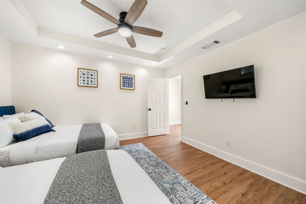 Come stay in this fresh, newly-renovated 3-bedroom cottage in Norcross! Just a few minutes' walk to historic downtown Norcross, you will find shops, restaurants, and entertainment. Brand new appliances and furniture complement this charming home that's sure to have something for everyone. This cottage features 3 bedrooms with 4 beds and 2 full bathrooms. Enjoy a fully stocked chef's kitchen with complimentary Keurig K-cups, a dining area with seating for 8, and a private back deck overlooking the backyard. Each bedroom is equipped with a smart TV, and strong Wi-Fi is available throughout. A washer and dryer are available on-site, and the home is pet-friendly. This property is pet-friendly, allowing you to bring your furry friends along for the stay. Located just a 2-minute drive or a 10-minute walk from downtown Norcross shops, Lillian Webb Park, and Thrasher Park, this cottage offers convenience and charm. The Flint Hill venue is just a 1-minute walk away, and you're a short drive from attractions like Tiny Towne and Stone Mountain Park. Hartsfield-Jackson Atlanta International Airport is a 45-minute drive, and downtown Atlanta is 30 minutes away. This home is located close to active train tracks, which can be exciting to watch but also quite loud. Complimentary sound machines are provided for a peaceful night's sleep. Security cameras facing the yards will be on during your stay. Guests must be aged 21 or older to rent. [SI]