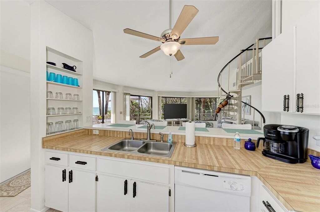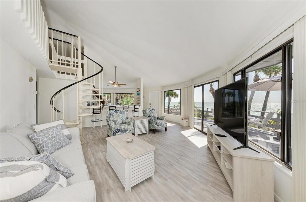 A secluded & private,nearly one-acre tropical paradise surrounds this beachfront coastal-style home. A spectacular property with its own private beach! Unsurpassed Gulf Views will take your breath away! As you enter,you gaze across the spacious and open floor plan,through the windows that open onto the wrap-around expansive deck,and out to the stunning views of the beautiful beach and sparkling Gulf. You notice how the sunlight pours in,fills the home with light,and lifts your spirits. Soaring high ceilings,tile floors in the kitchen area,and an incredible amount of cabinets,closets,and storage in this home. This home is spacious with 2 Bedrooms,2 Bathrooms. There is currently a queen sofa bed in the living room. Plus a great loft area for additional guest space You will never want to leave when you watch in awe the spectacular nightly performance,sunsets on the gulf! There are so many spaces that beckon you to enjoy time with family and friends as you blissfully watch the ospreys soar,the pelicans dive,and manatees and dolphins playing in the shimmering sea. The yard is true serenity for a nature enthusiast and beckons you to meander through the island-style lush & park-like grounds with many Oak and Palm trees. The unique shape of this home will give you breathtaking views of Southwest Florida sunsets. You will never miss a sunset as the never-ending panoramic views of the Gulf of Mexico are available to you from inside the home,outside around your property,and on the beach. This home is tucked back from the road and the mature landscape offers added privacy. And just steps away through your private backyard,you step out to your private beach where you can relax and sink into the sand with a frosty beverage in your hand. This is a desirable and unique location walking or biking distance to a park with playground,beautiful trails through mangrove forests,and additional public fishing docks,pavilion & picnic areas. MLS# A4545498